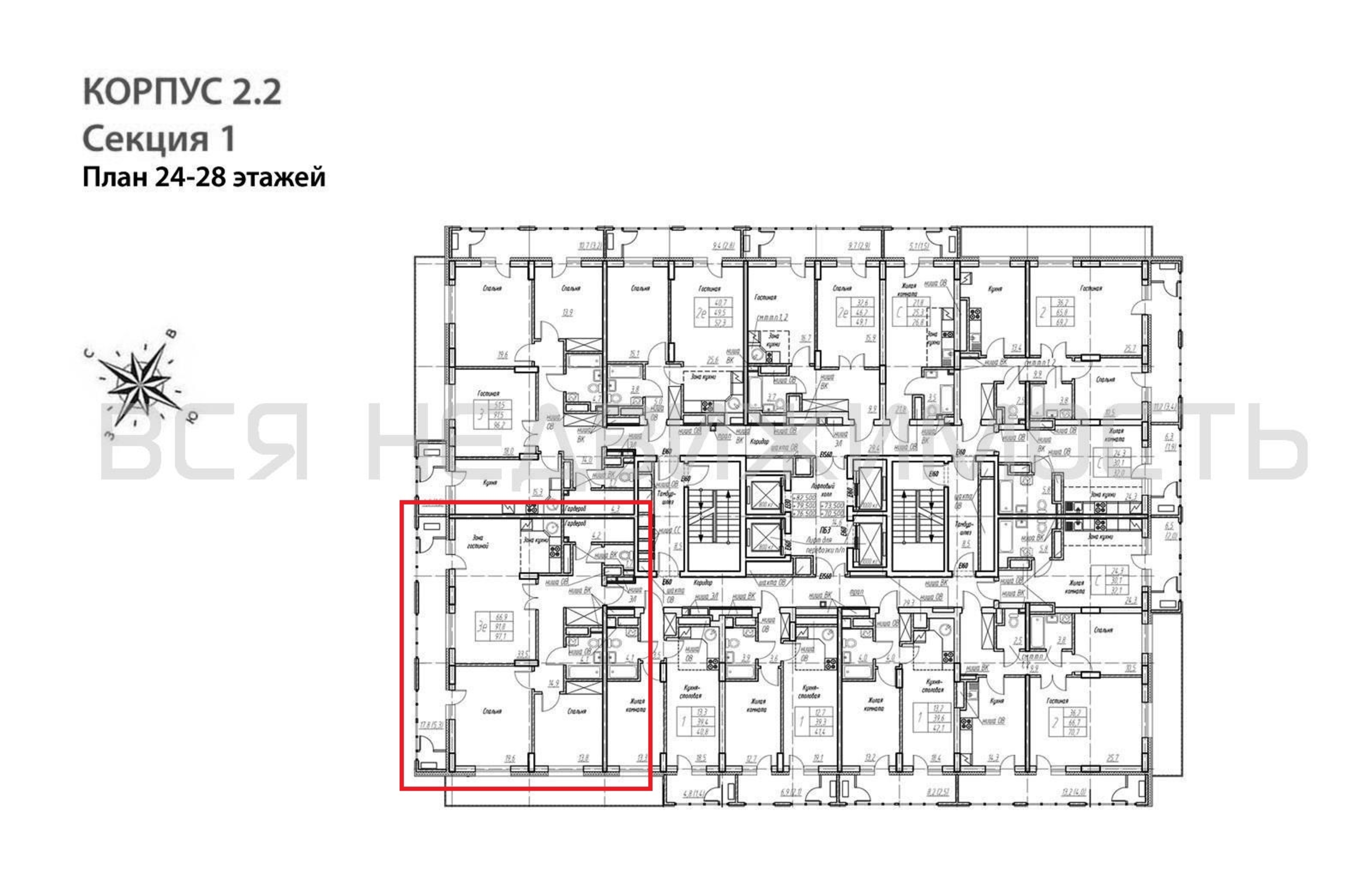 2-комнатная квартира, 97.10 м² 26/32 этаж ID объекта 100136894