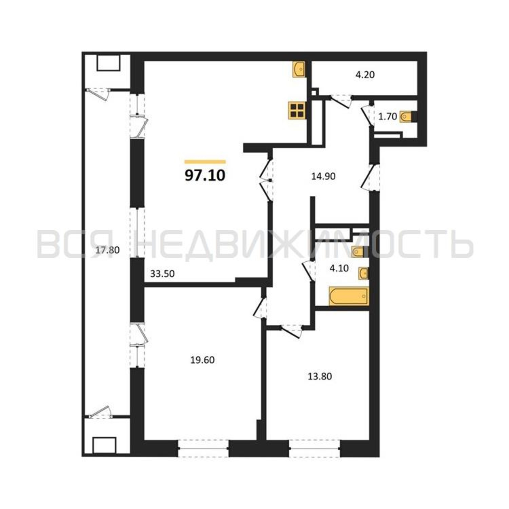 Строительная площадь97.10 м²