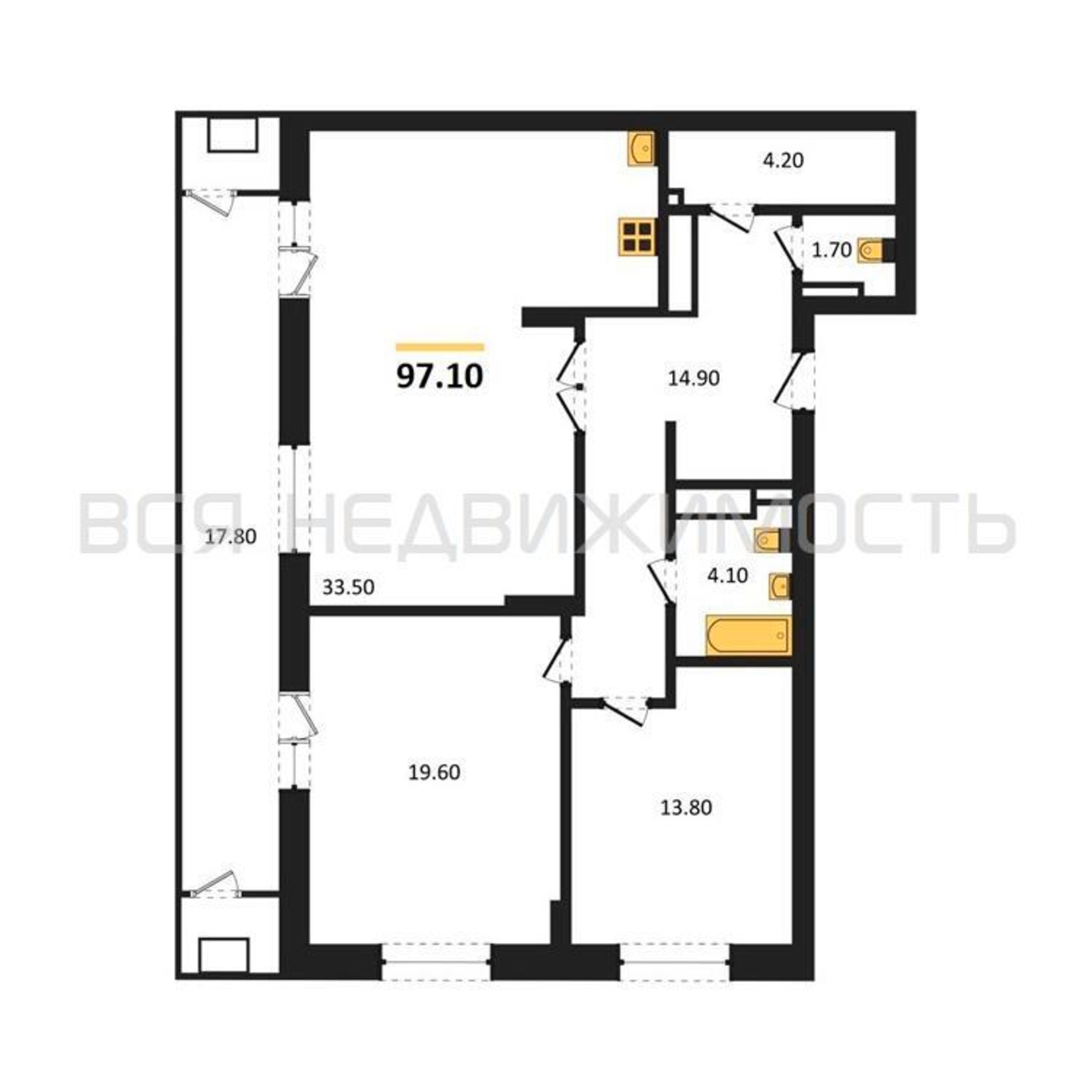2-комнатная квартира, 97.10 м² 28/32 этаж ID объекта 100136895