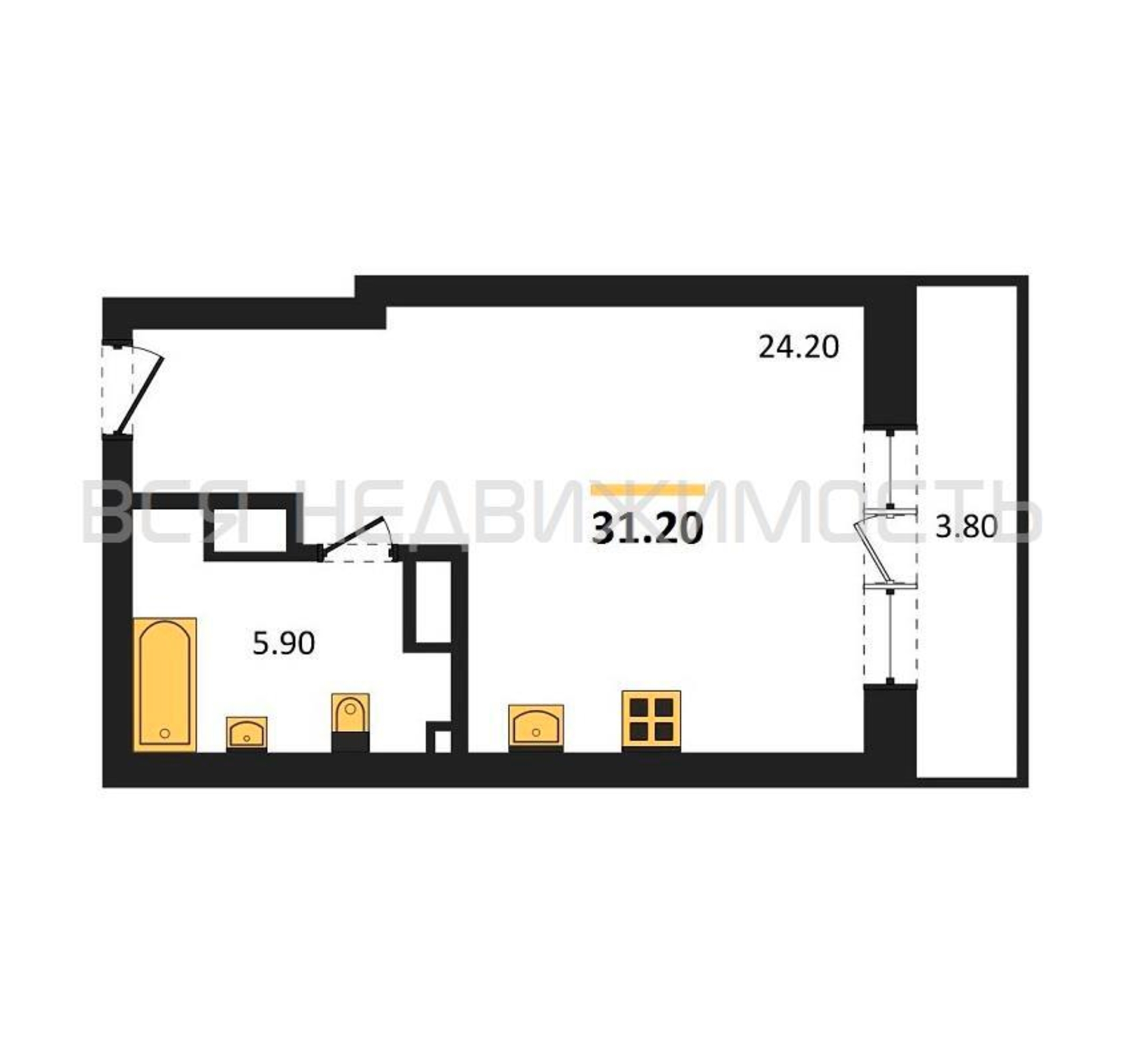 Квартиры-студии, 31.20 м² 3/32 этаж ID объекта 100136910