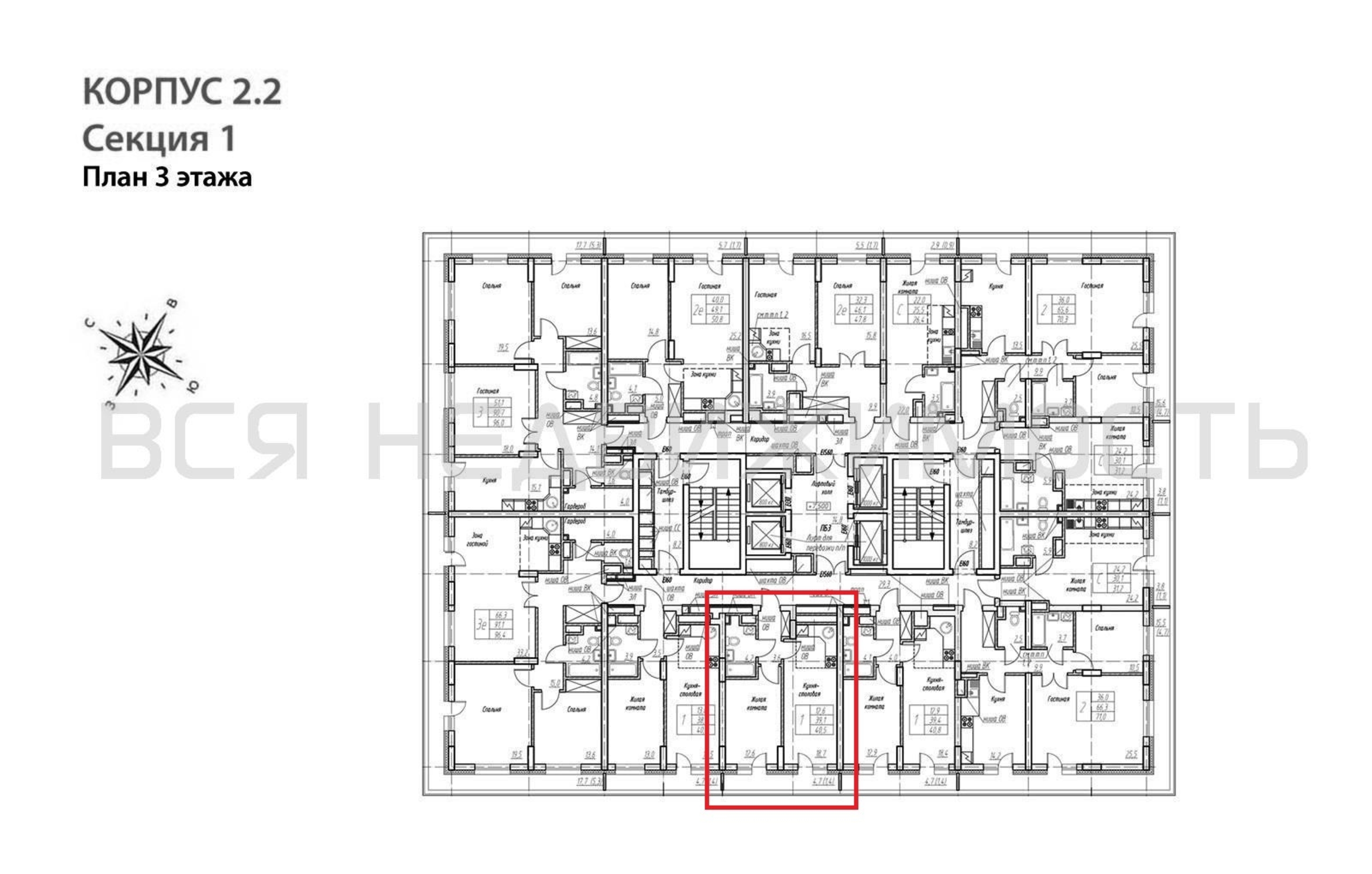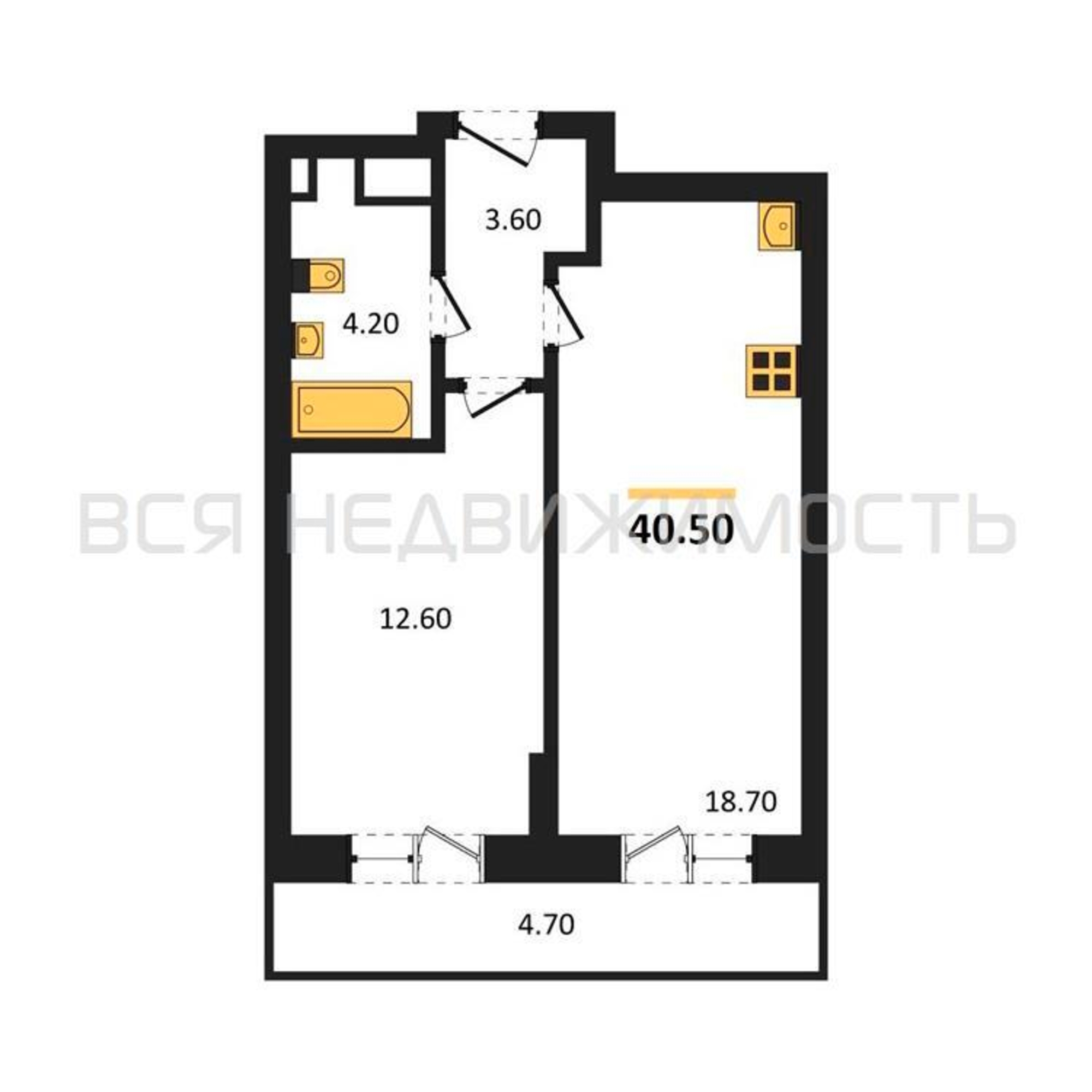 1-комнатная квартира, 40.50 м² 3/32 этаж ID объекта 100136912