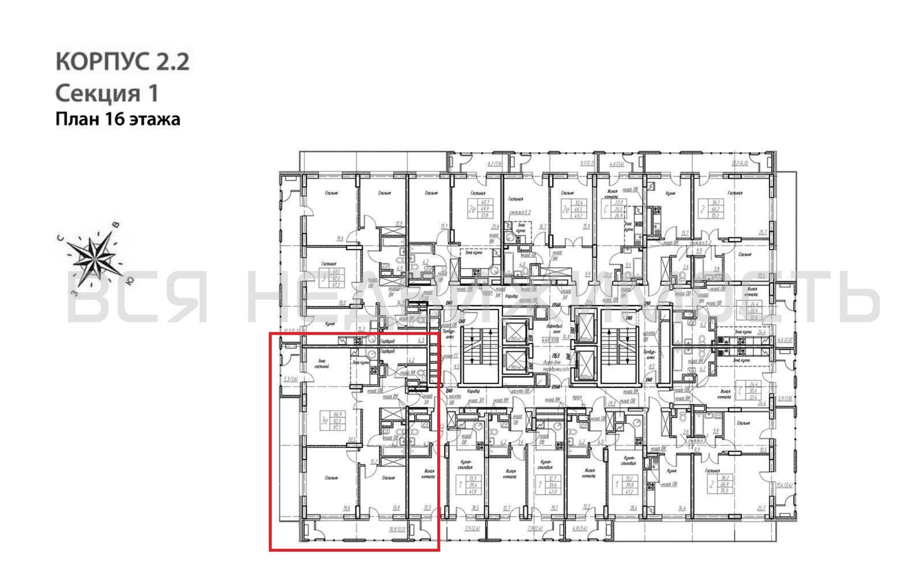 2-комнатная квартира, 97.10 м² 16/32 этаж ID объекта 100136923