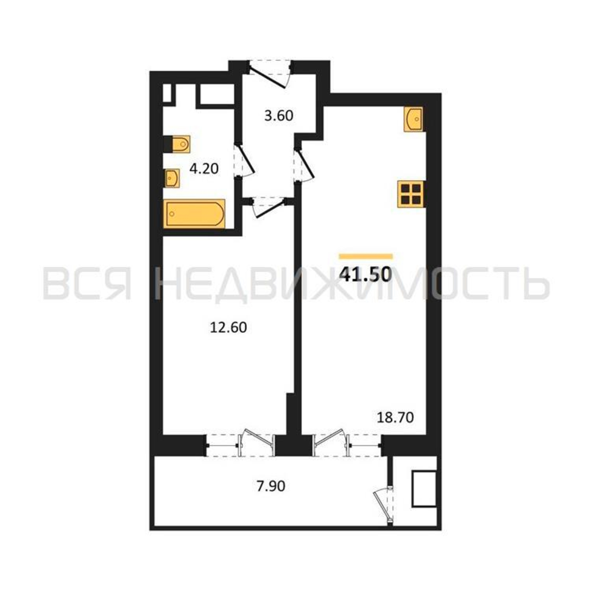 1-комнатная квартира, 41.50 м² 7/32 этаж ID объекта 100136927