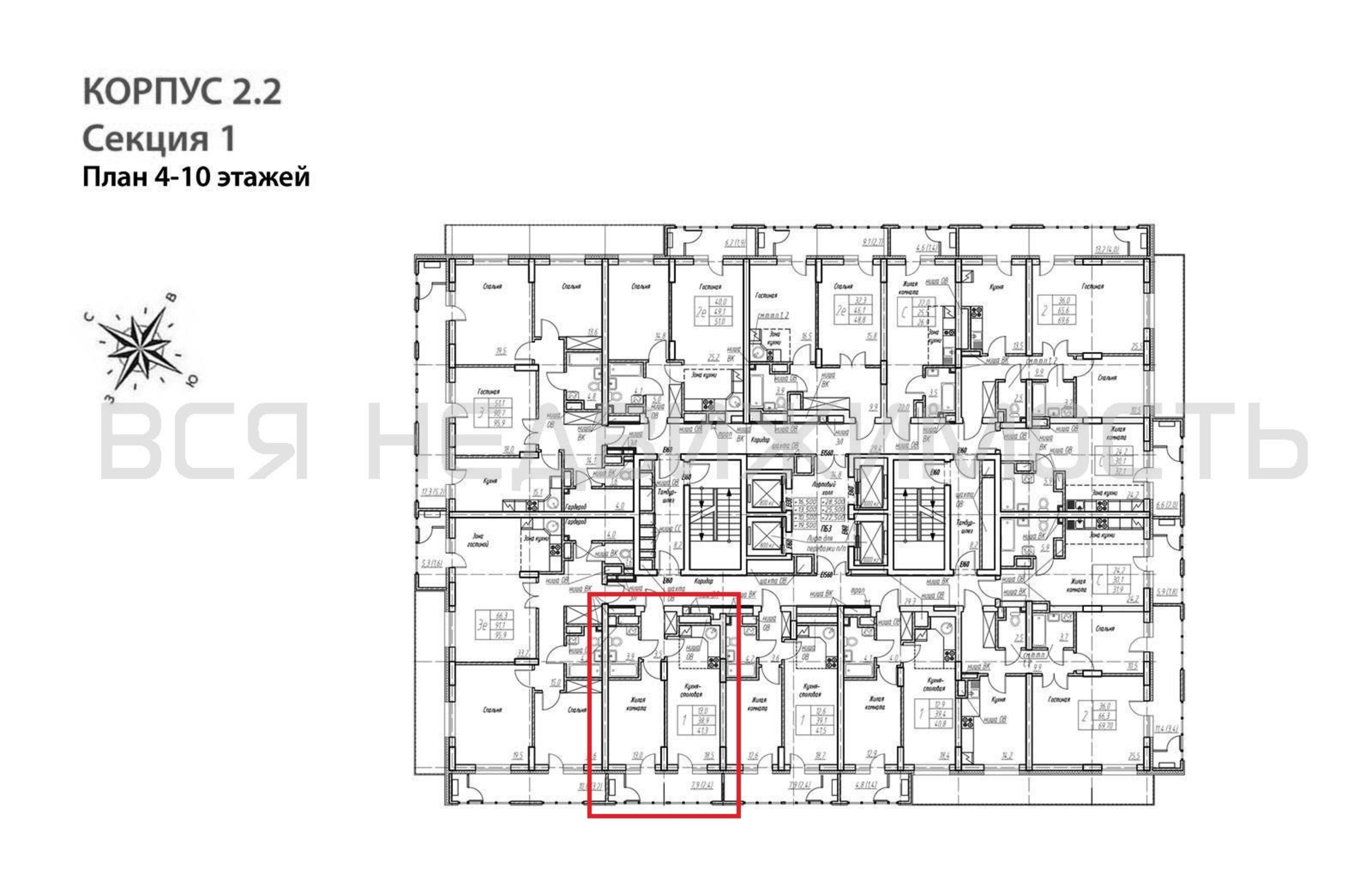 1-комнатная квартира, 41.30 м² 7/32 этаж ID объекта 100136954