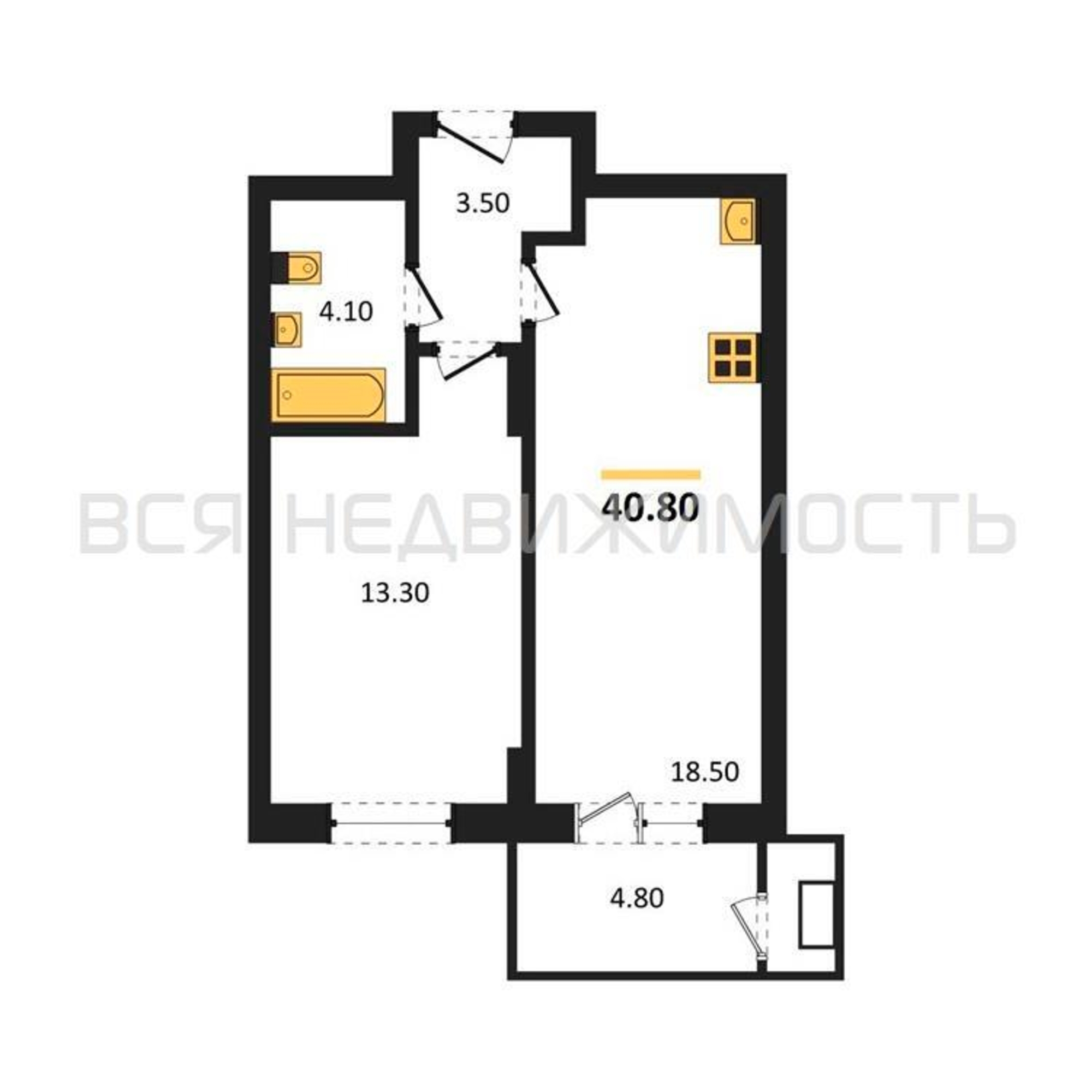 Строительная площадь40.80 м²