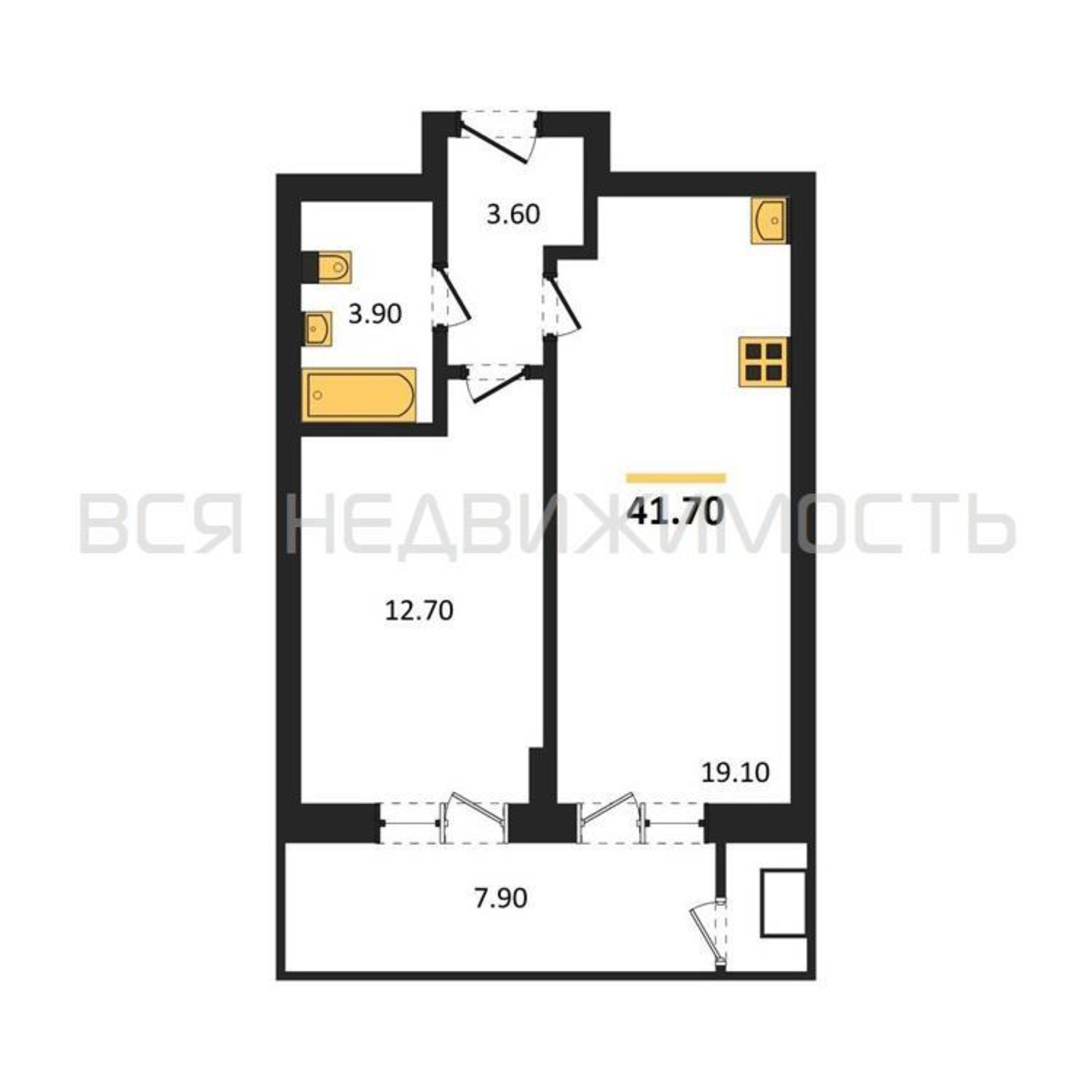 1-комнатная квартира, 41.70 м² 20/32 этаж ID объекта 100137009