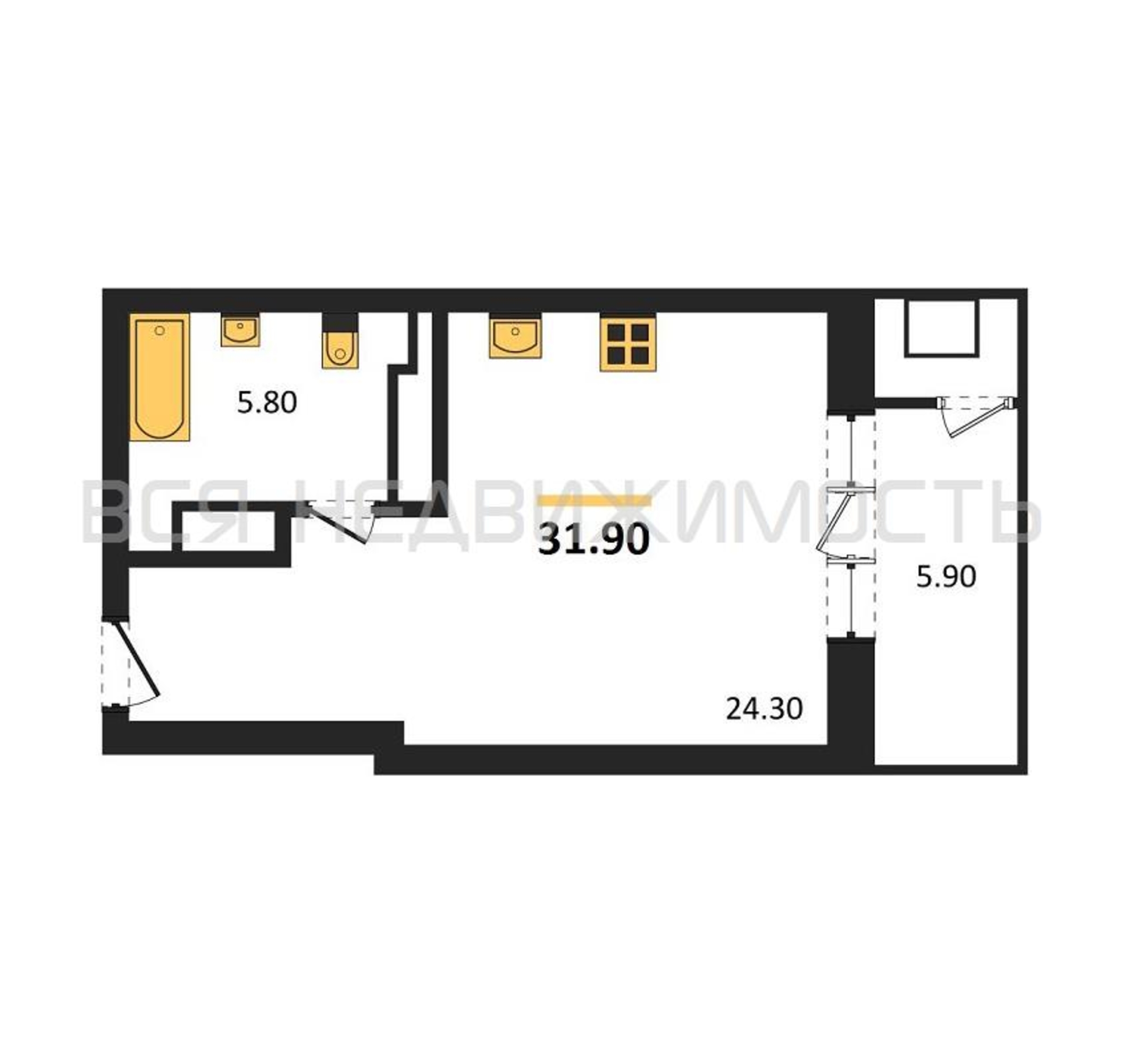 Квартиры-студии, 31.90 м² 30/32 этаж ID объекта 100137046