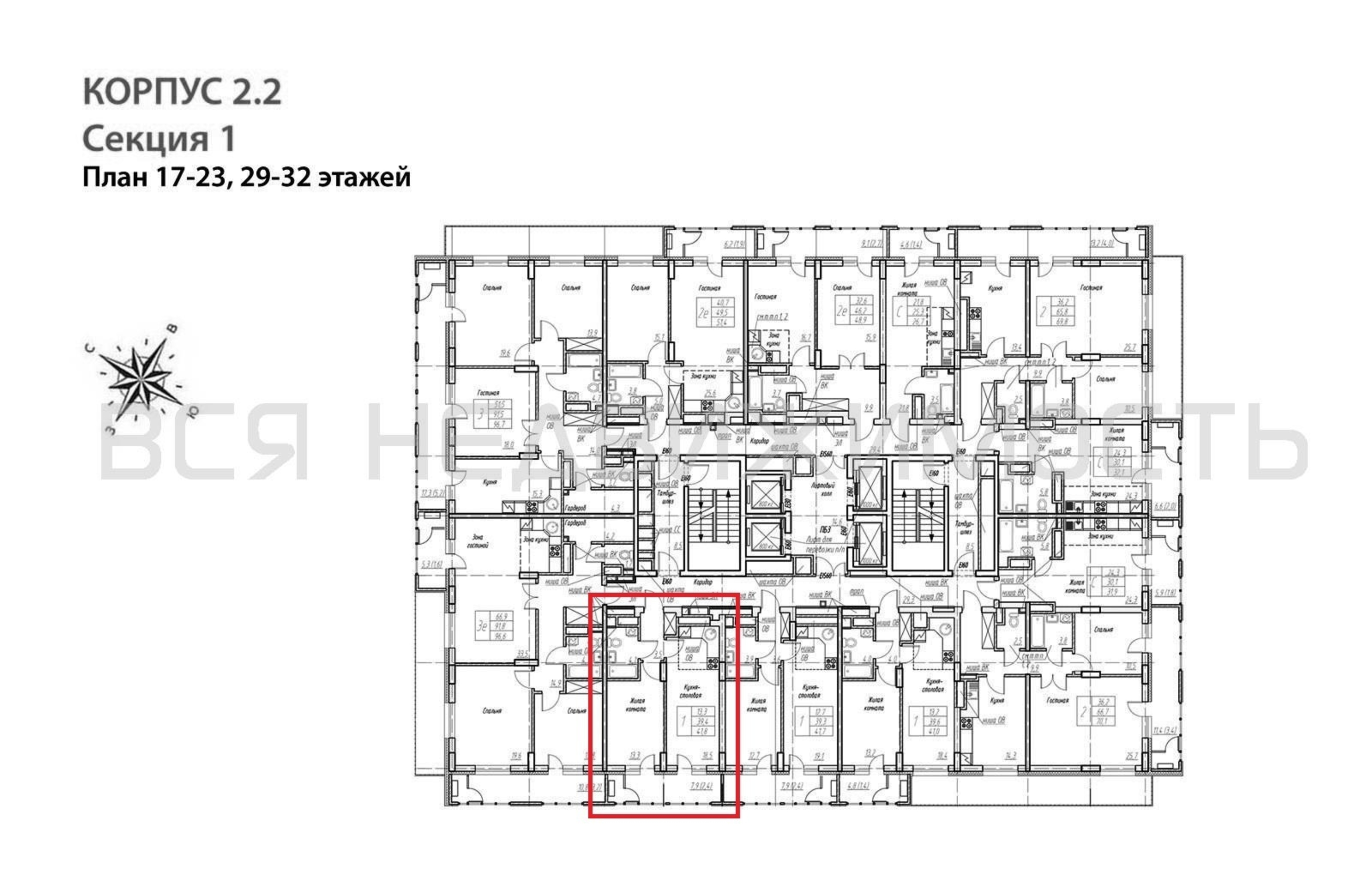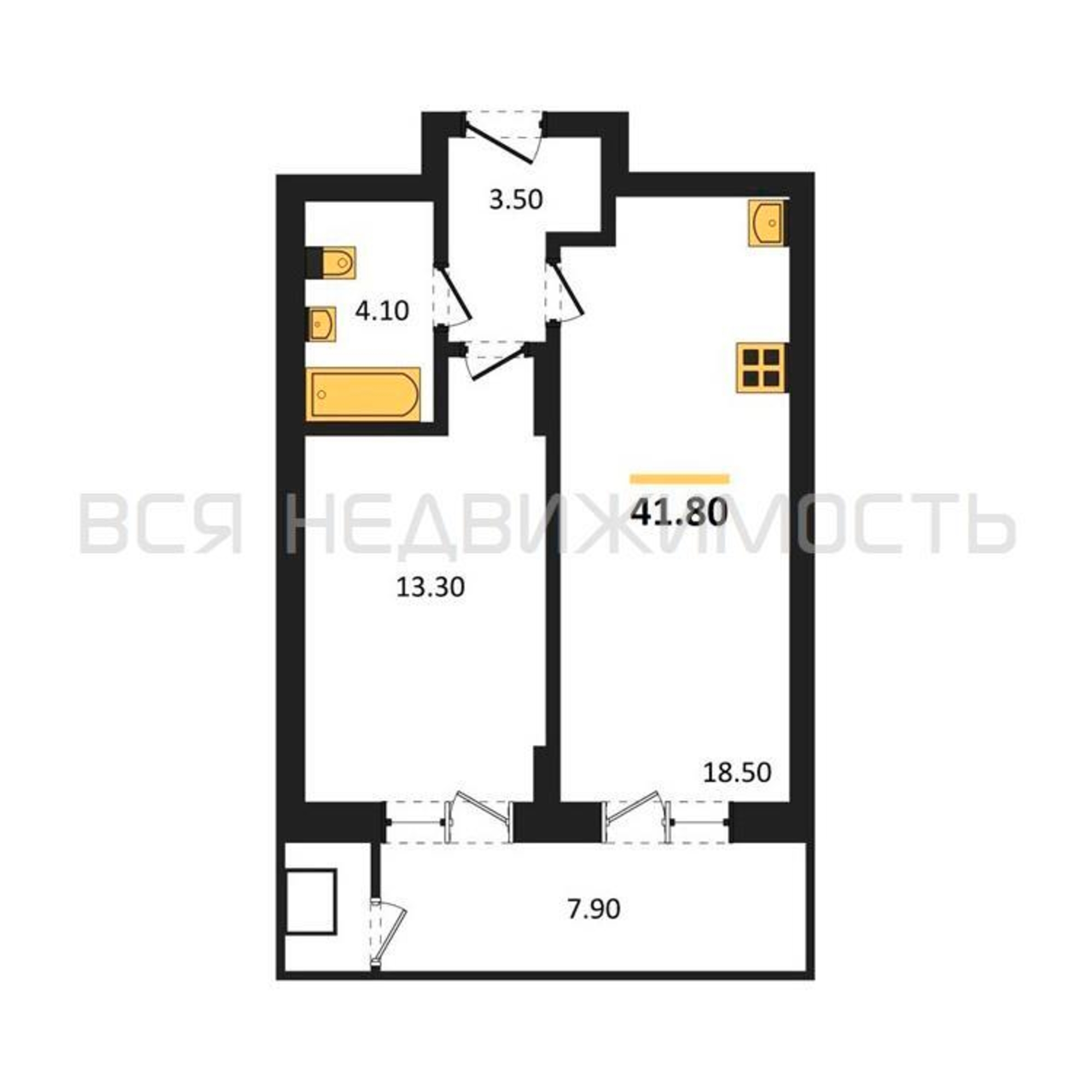1-комнатная квартира, 41.80 м² 18/32 этаж ID объекта 100137048