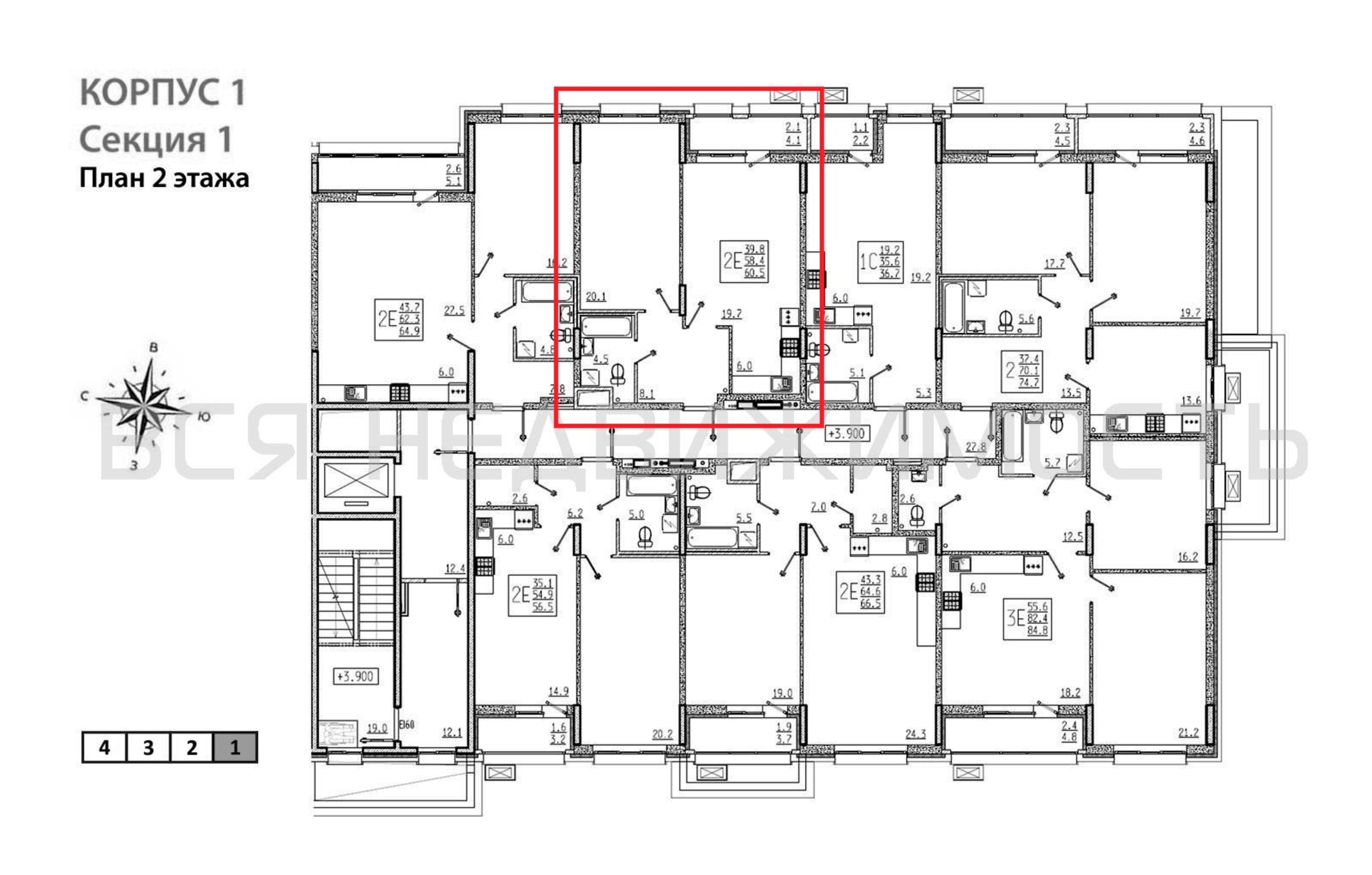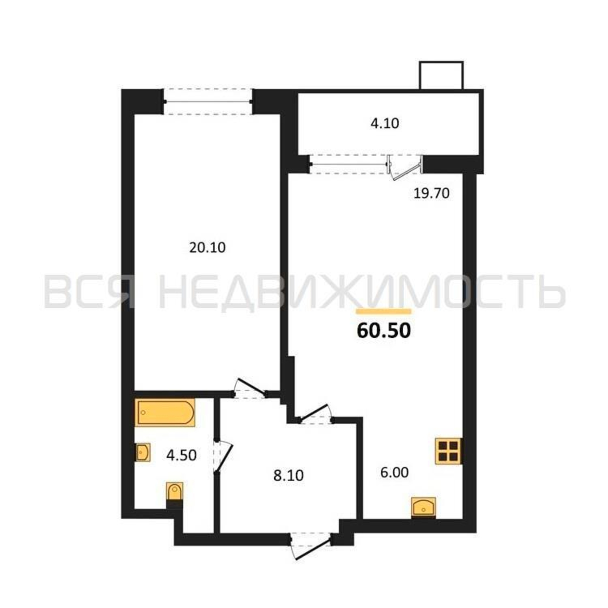 1-комнатная квартира, 60.50 м² 2/9 этаж ID объекта 100137076