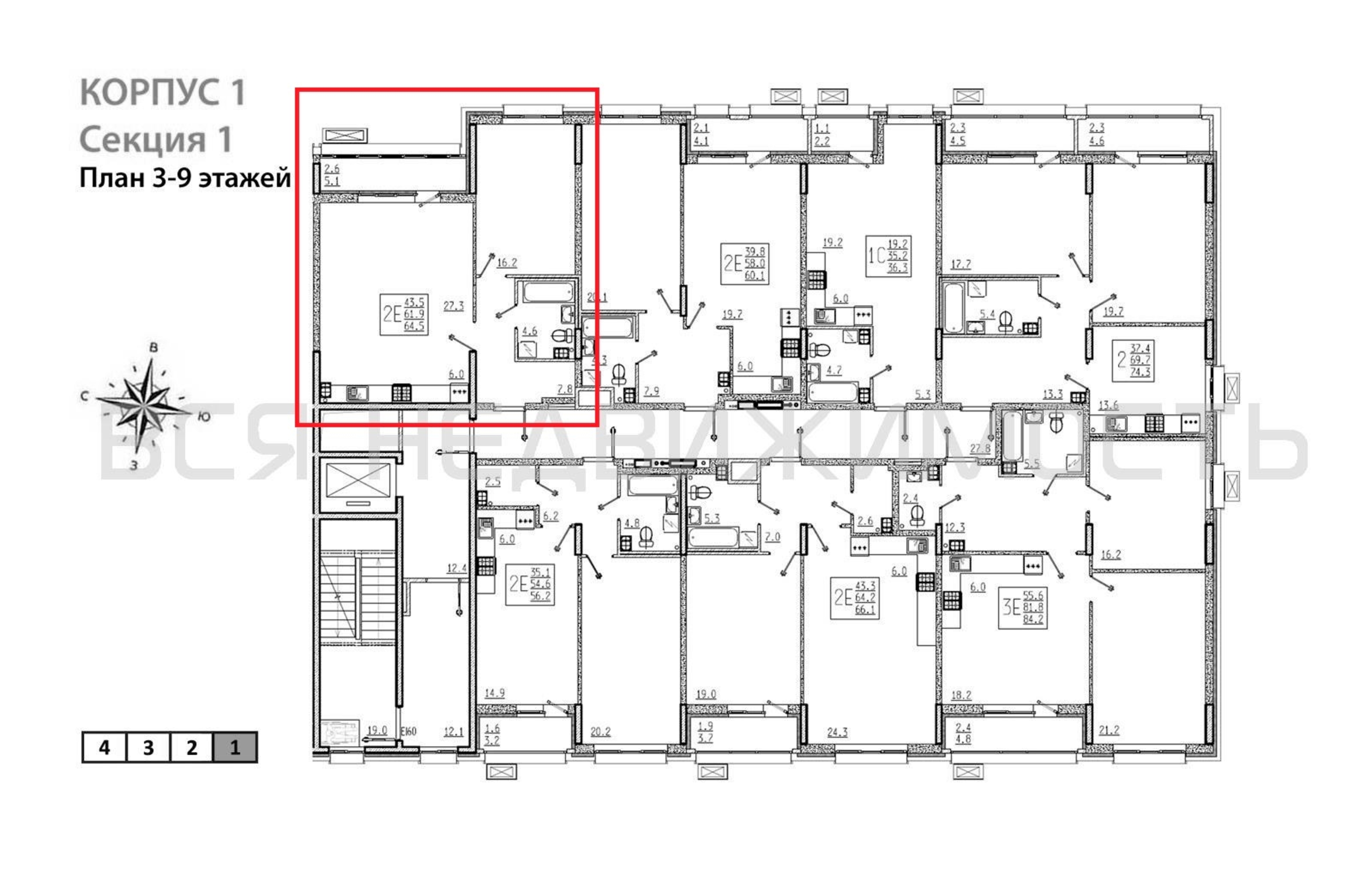 1-комнатная квартира, 64.50 м² 3/9 этаж ID объекта 100137082