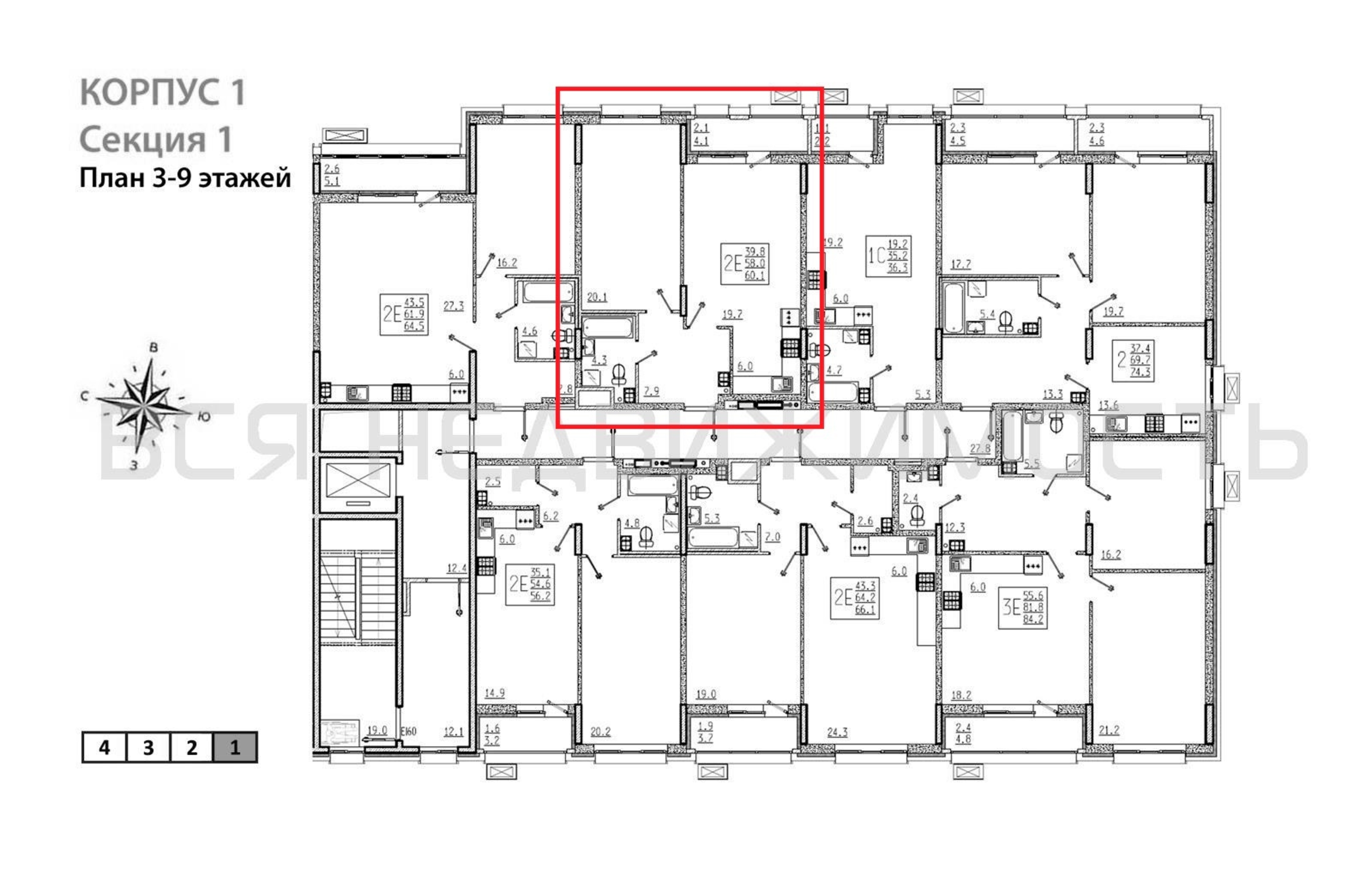 1-комнатная квартира, 60.10 м² 4/9 этаж ID объекта 100137090