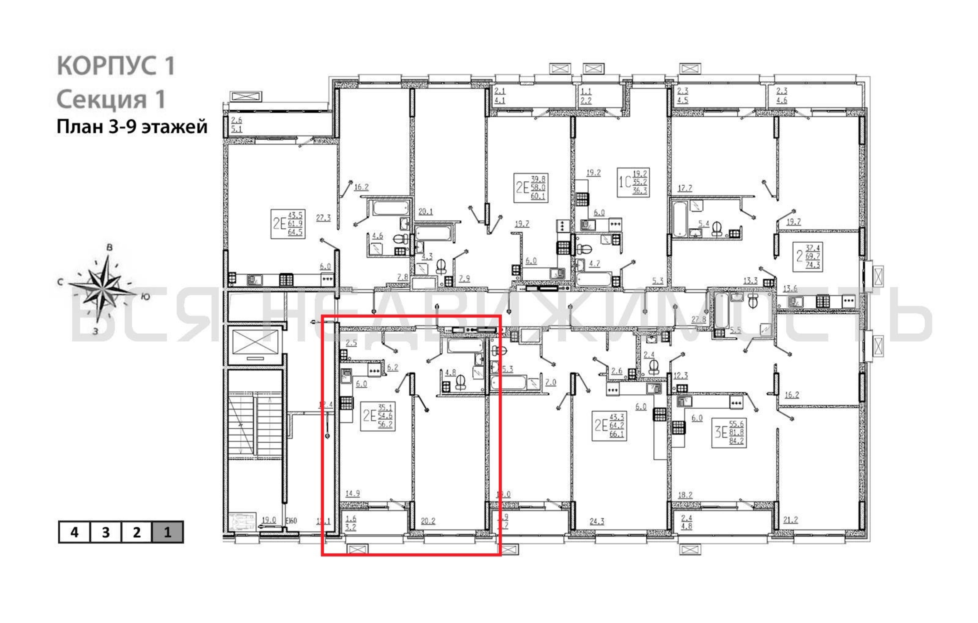 1-комнатная квартира, 56.20 м² 4/9 этаж ID объекта 100137095