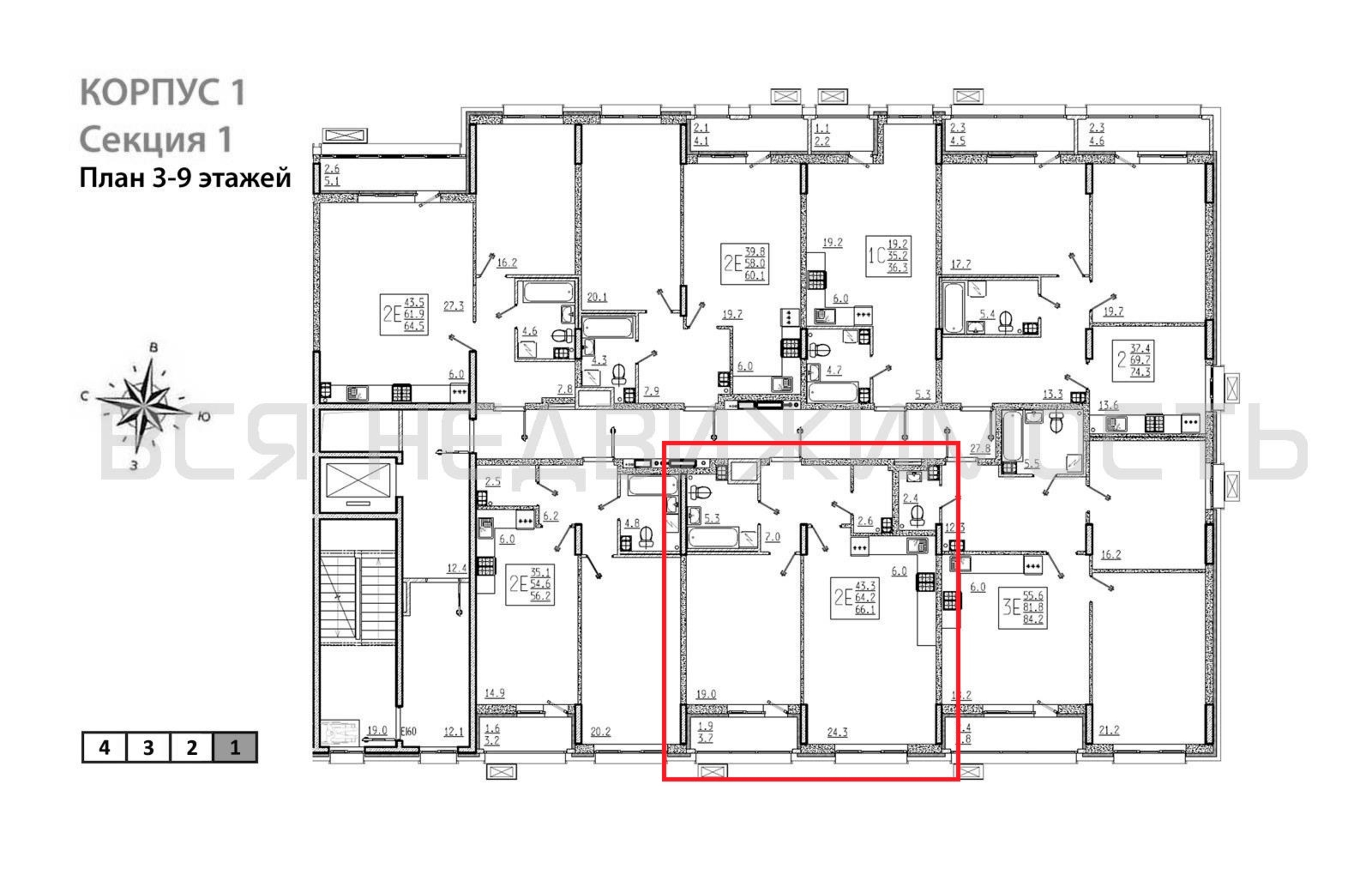 1-комнатная квартира, 66.10 м² 8/9 этаж ID объекта 100137122