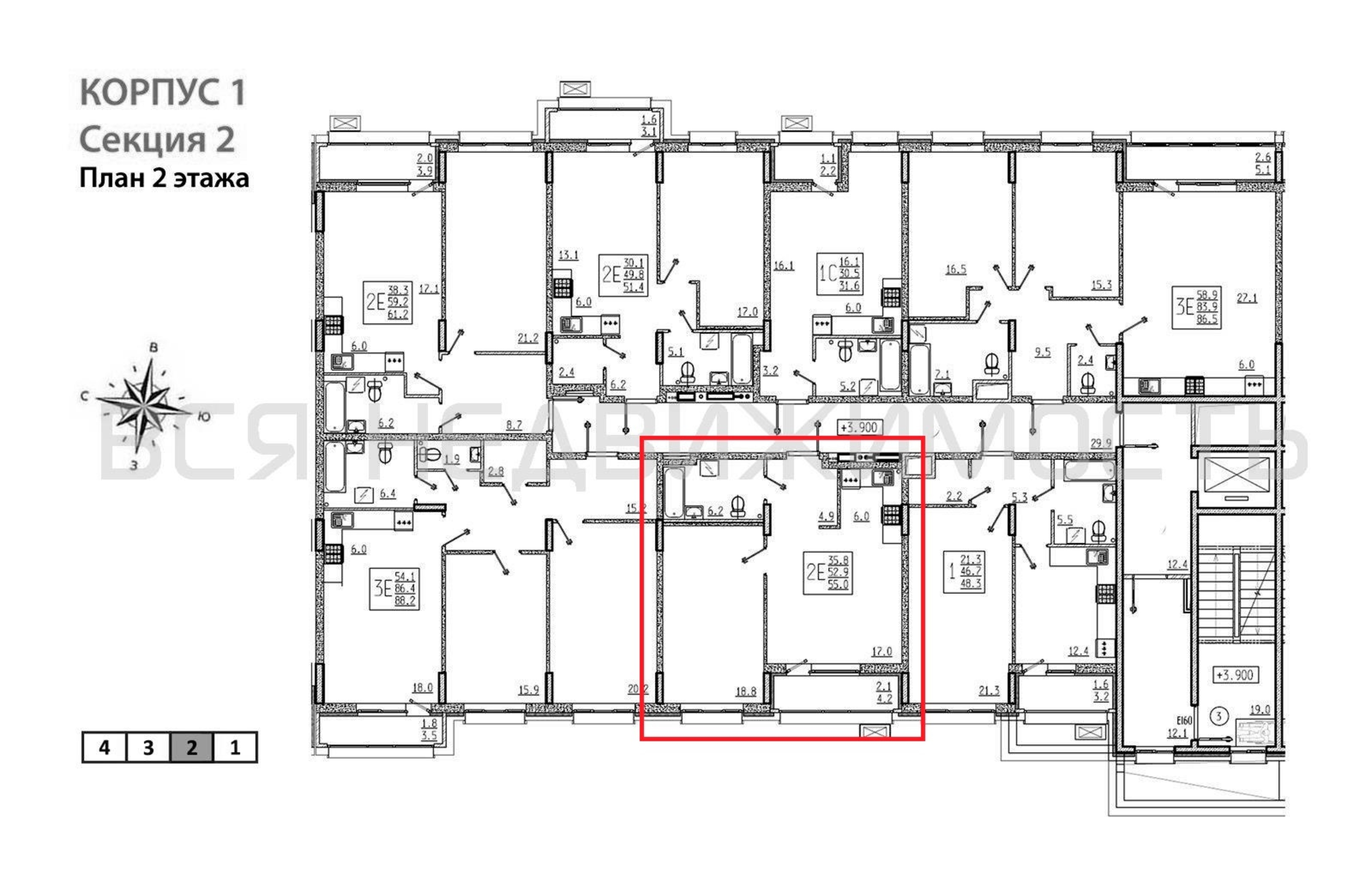 1-комнатная квартира, 55.00 м² 2/9 этаж ID объекта 100137132