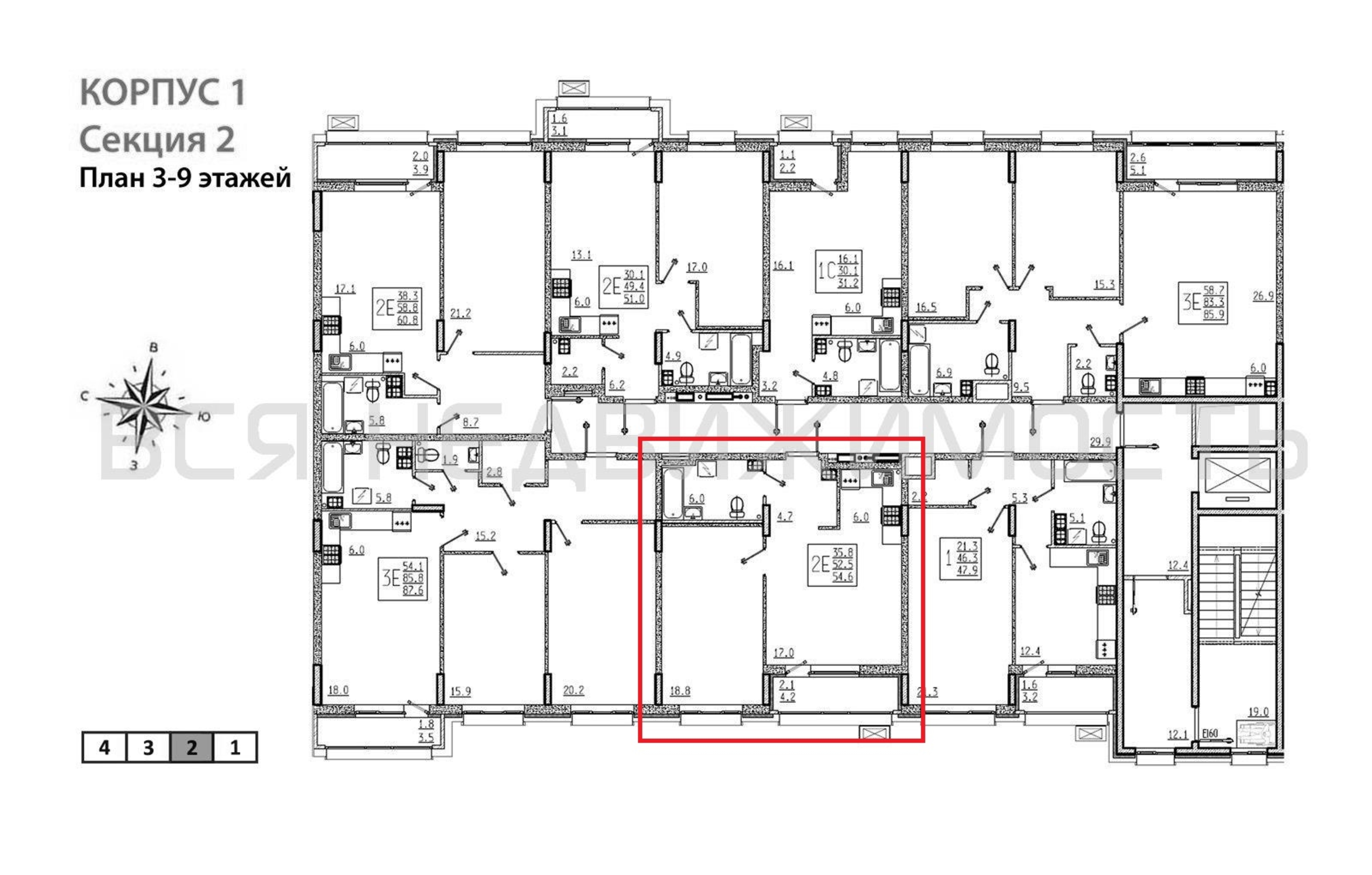 1-комнатная квартира, 54.60 м² 4/9 этаж ID объекта 100137146