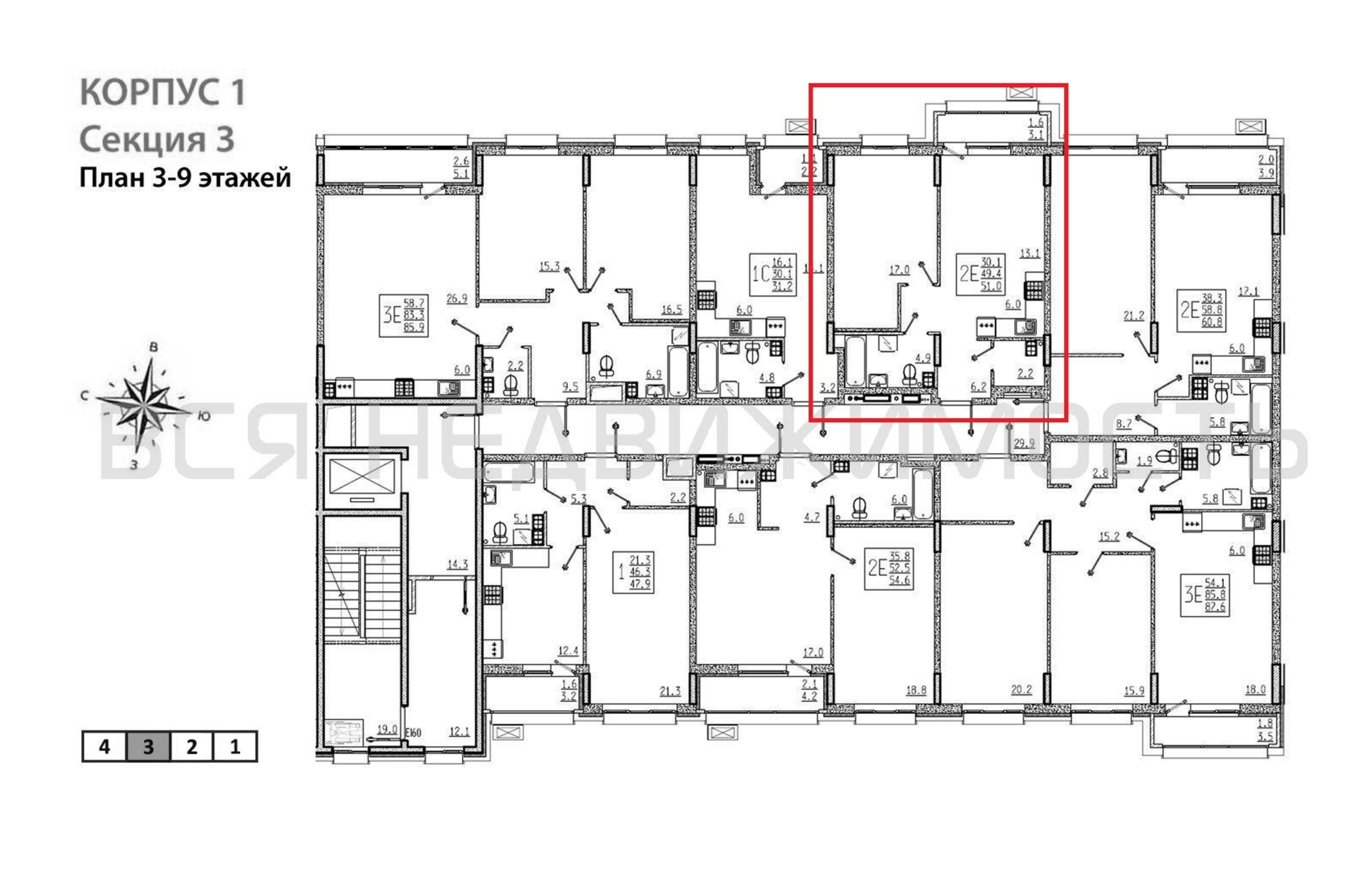 1-комнатная квартира, 51.00 м² 9/9 этаж ID объекта 100137238