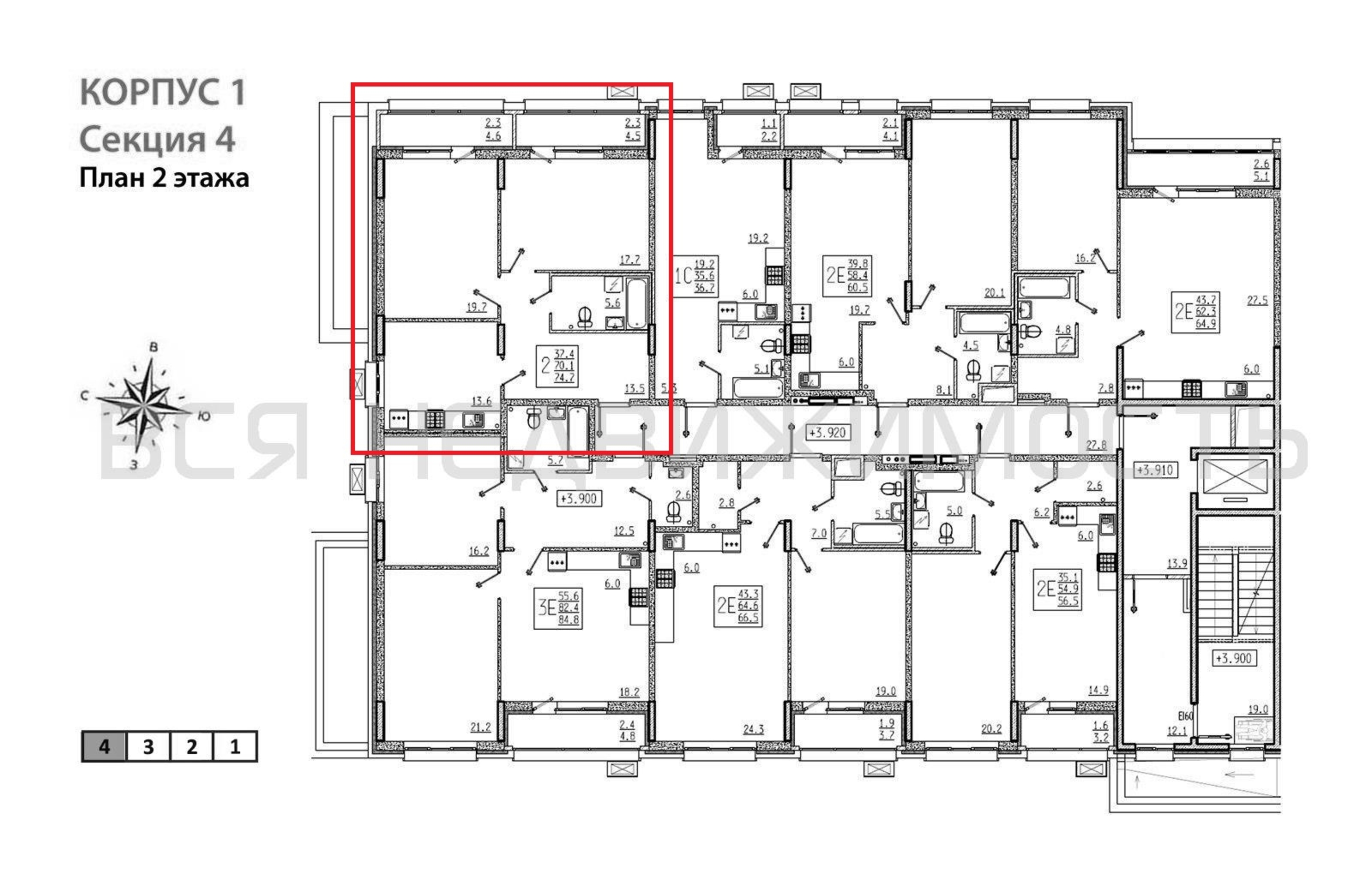 2-комнатная квартира, 74.70 м² 2/9 этаж ID объекта 100137246