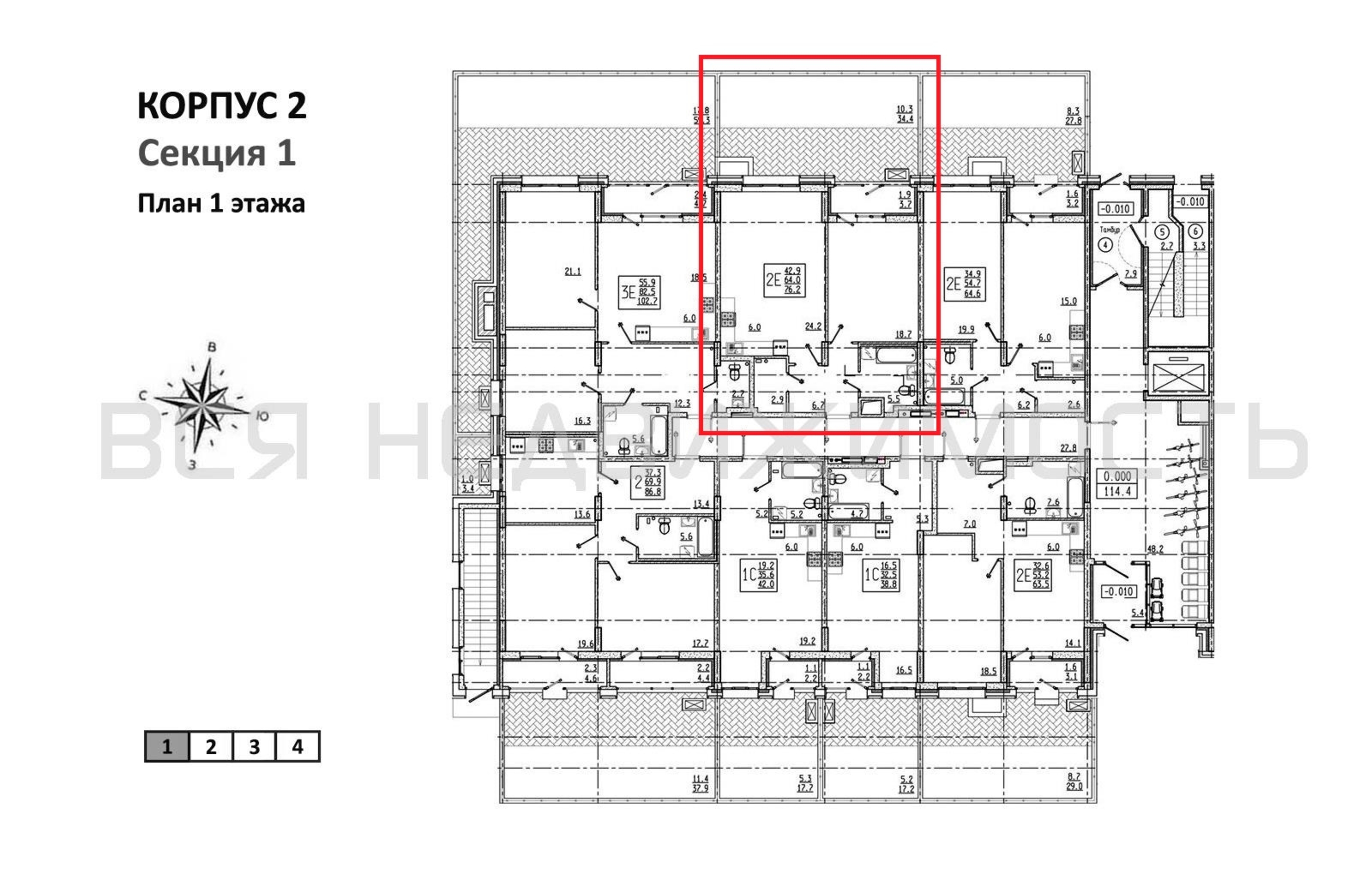 1-комнатная квартира, 76.20 м² 1/9 этаж ID объекта 100137304