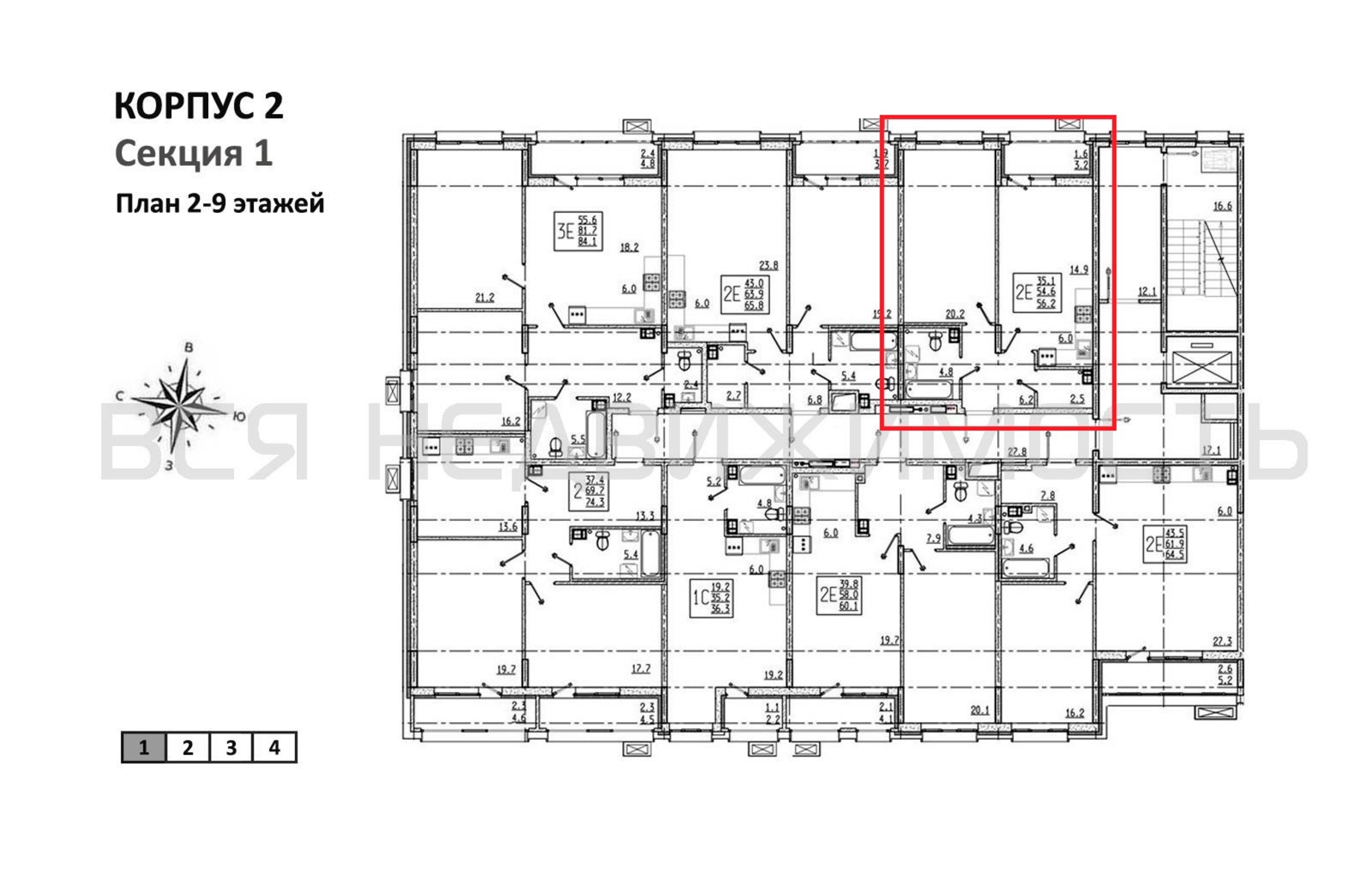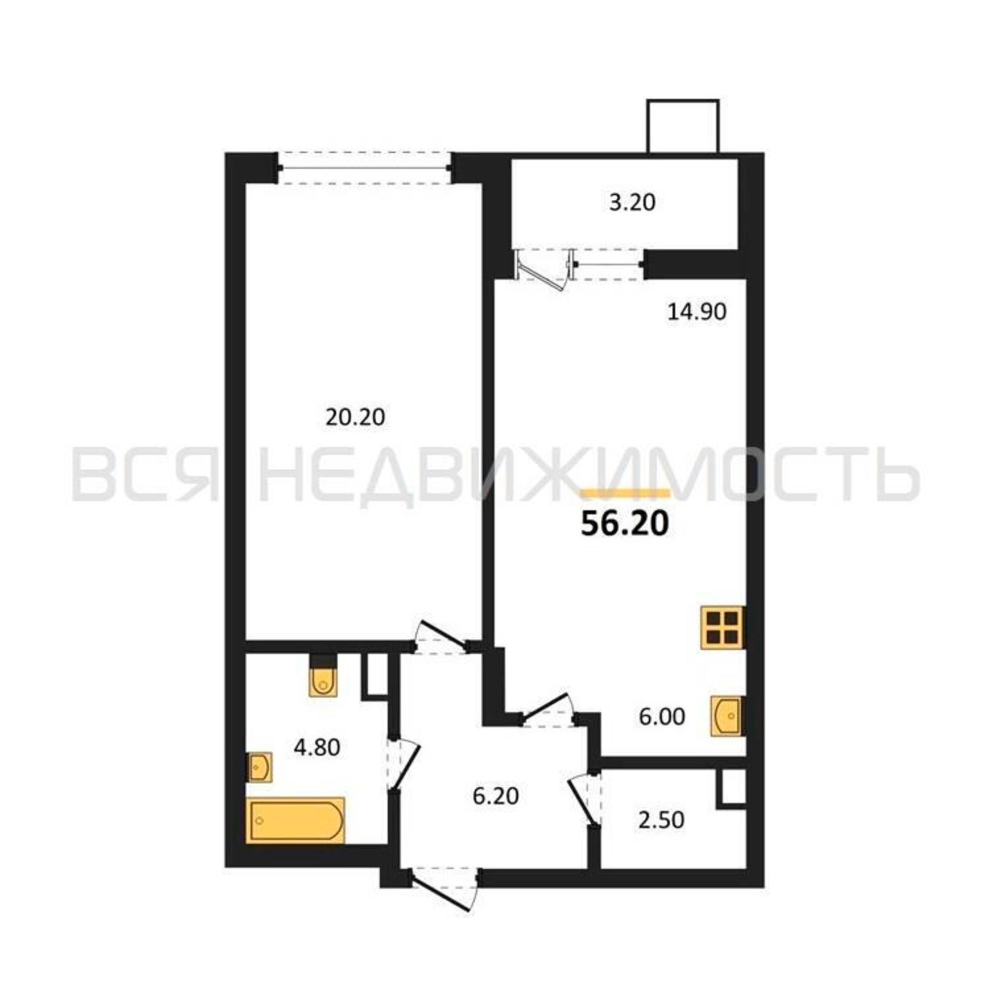 1-комнатная квартира, 56.20 м² 3/9 этаж ID объекта 100137319
