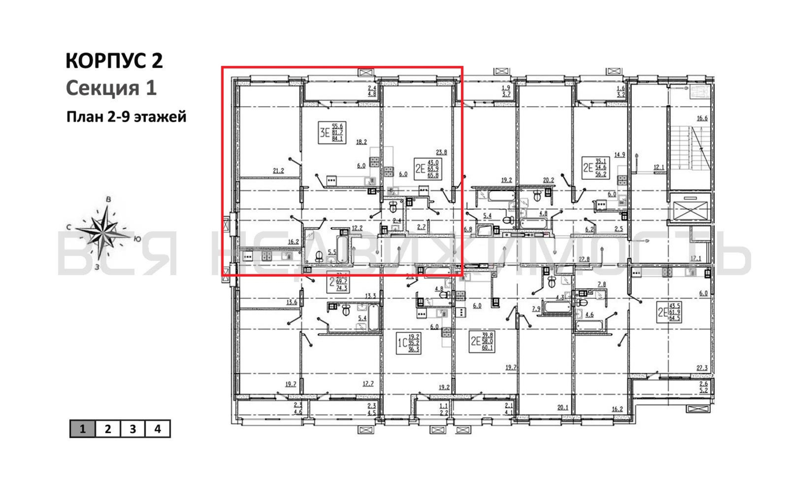 2-комнатная квартира, 84.10 м² 4/9 этаж ID объекта 100137324