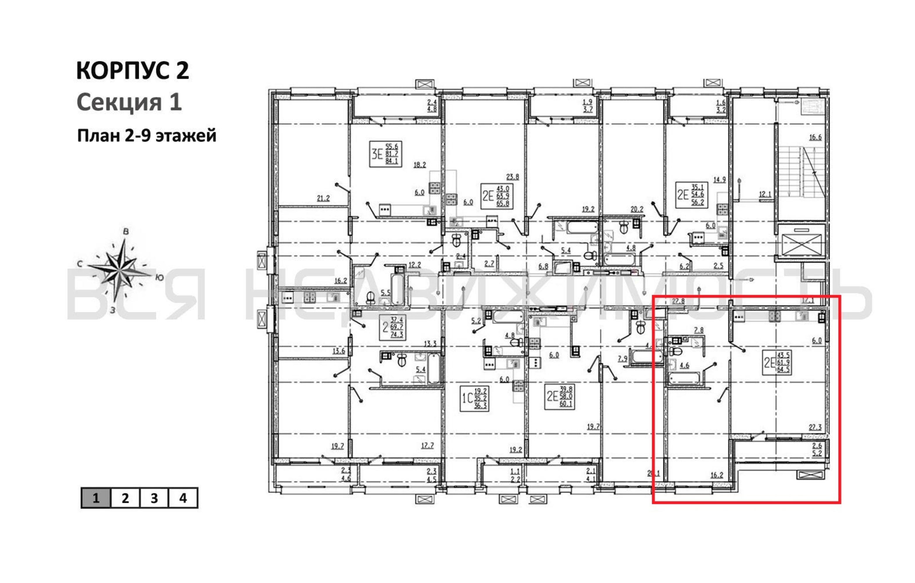 1-комнатная квартира, 64.50 м² 9/9 этаж ID объекта 100137355