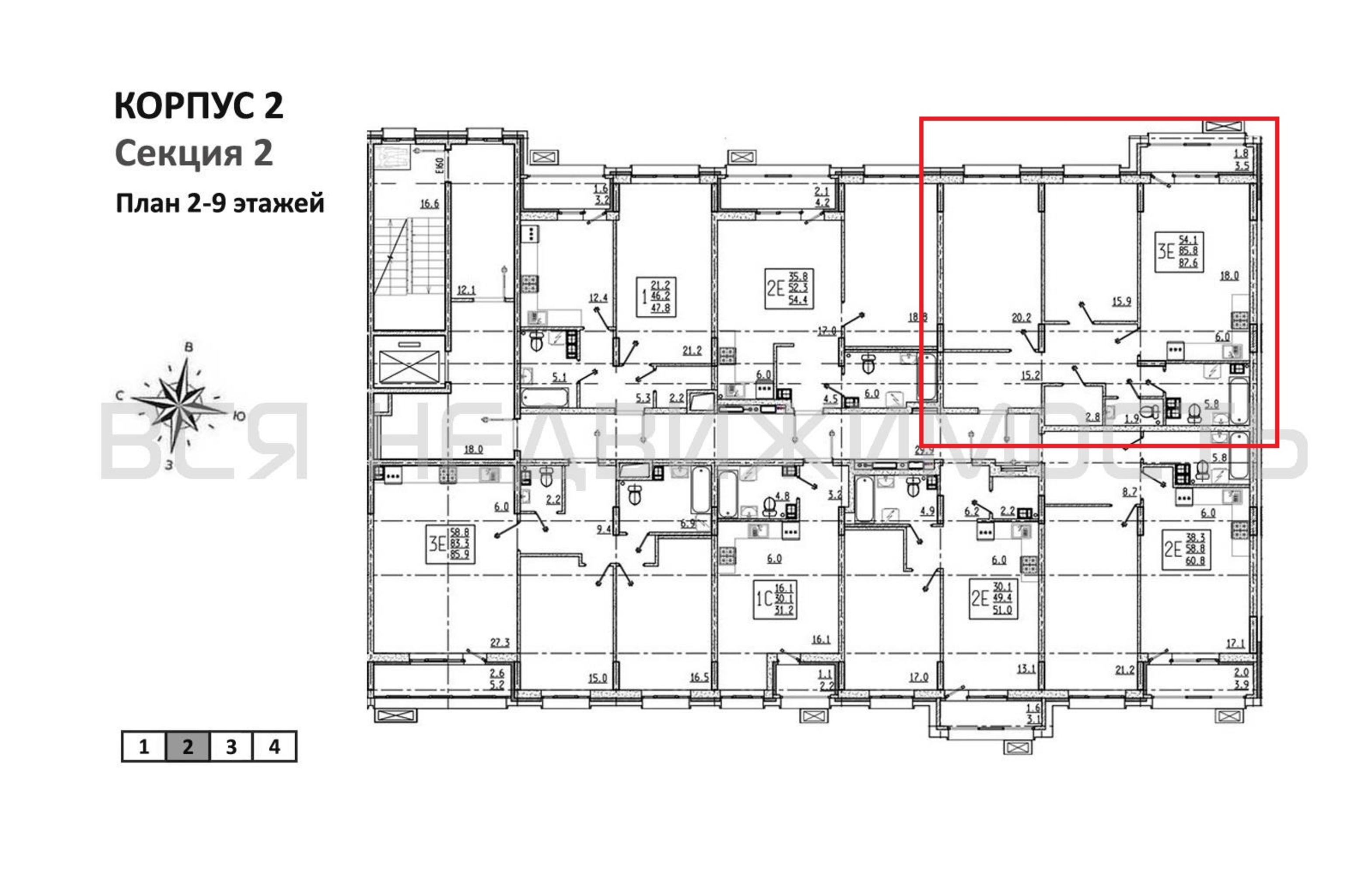 2-комнатная квартира, 87.60 м² 4/9 этаж ID объекта 100137378