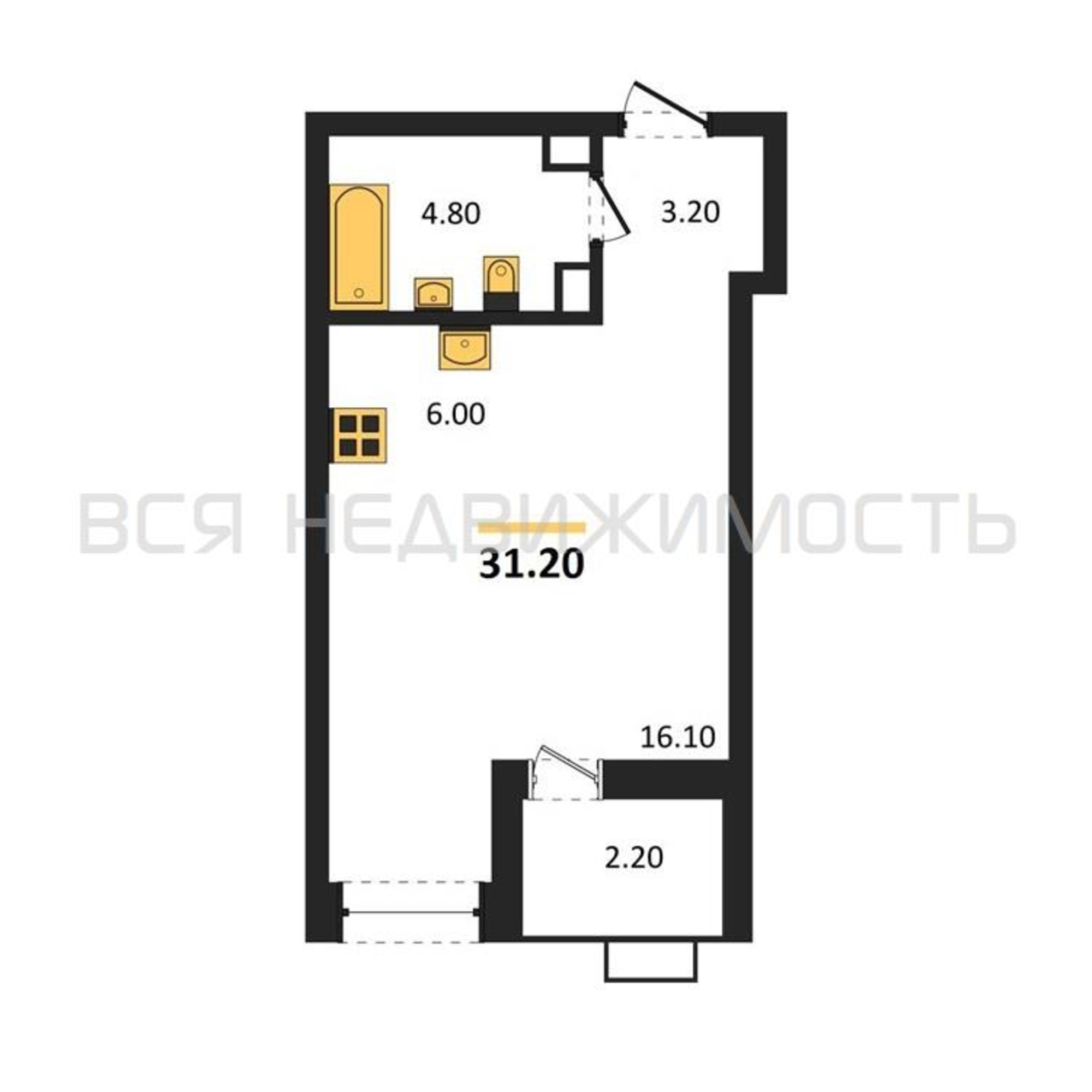 Квартиры-студии, 31.20 м² 5/9 этаж ID объекта 100137394