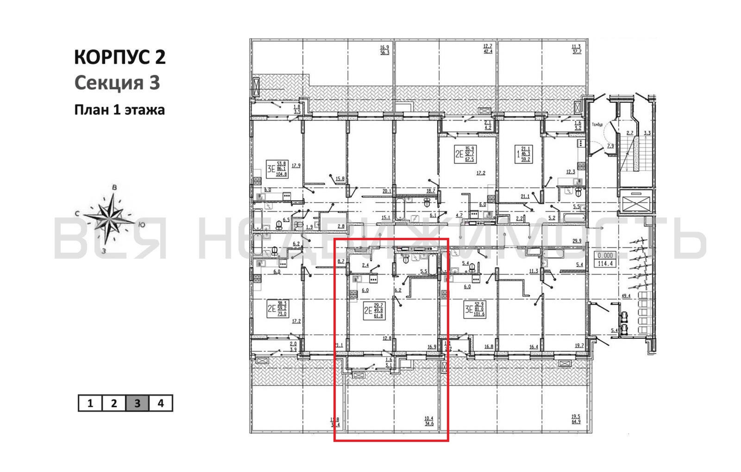 1-комнатная квартира, 61.80 м² 1/9 этаж ID объекта 100137425