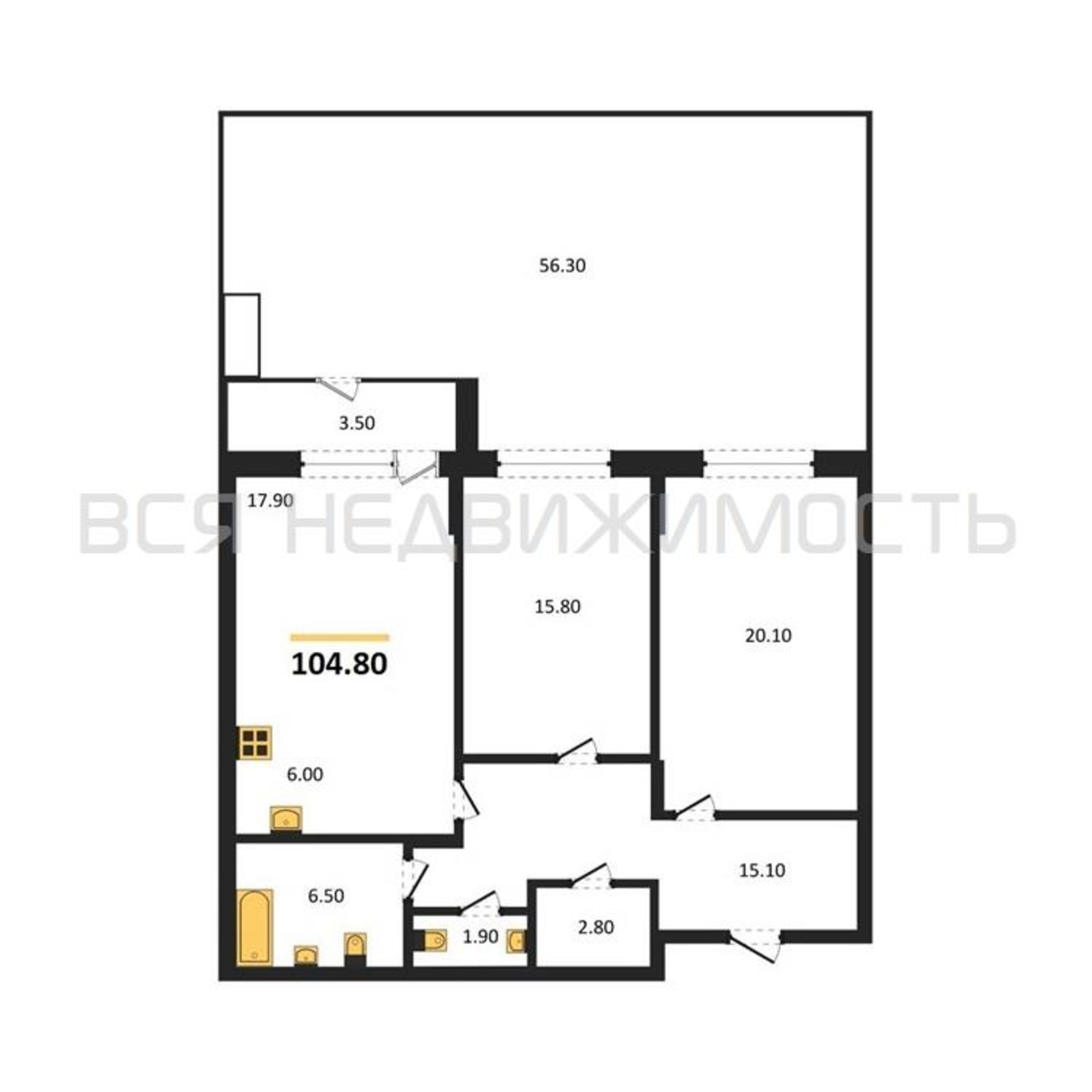 2-комнатная квартира, 104.80 м² 1/9 этаж ID объекта 100137427