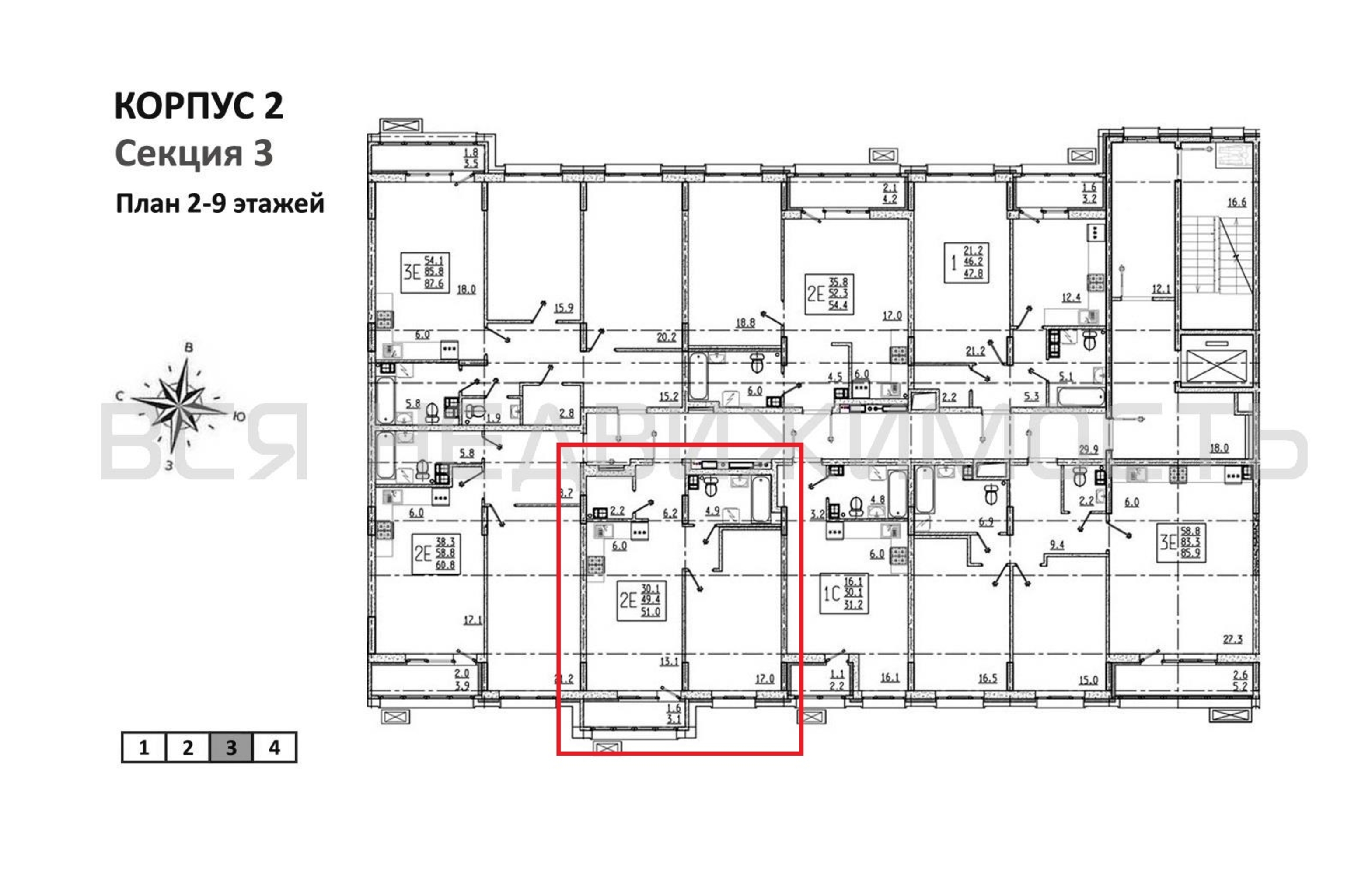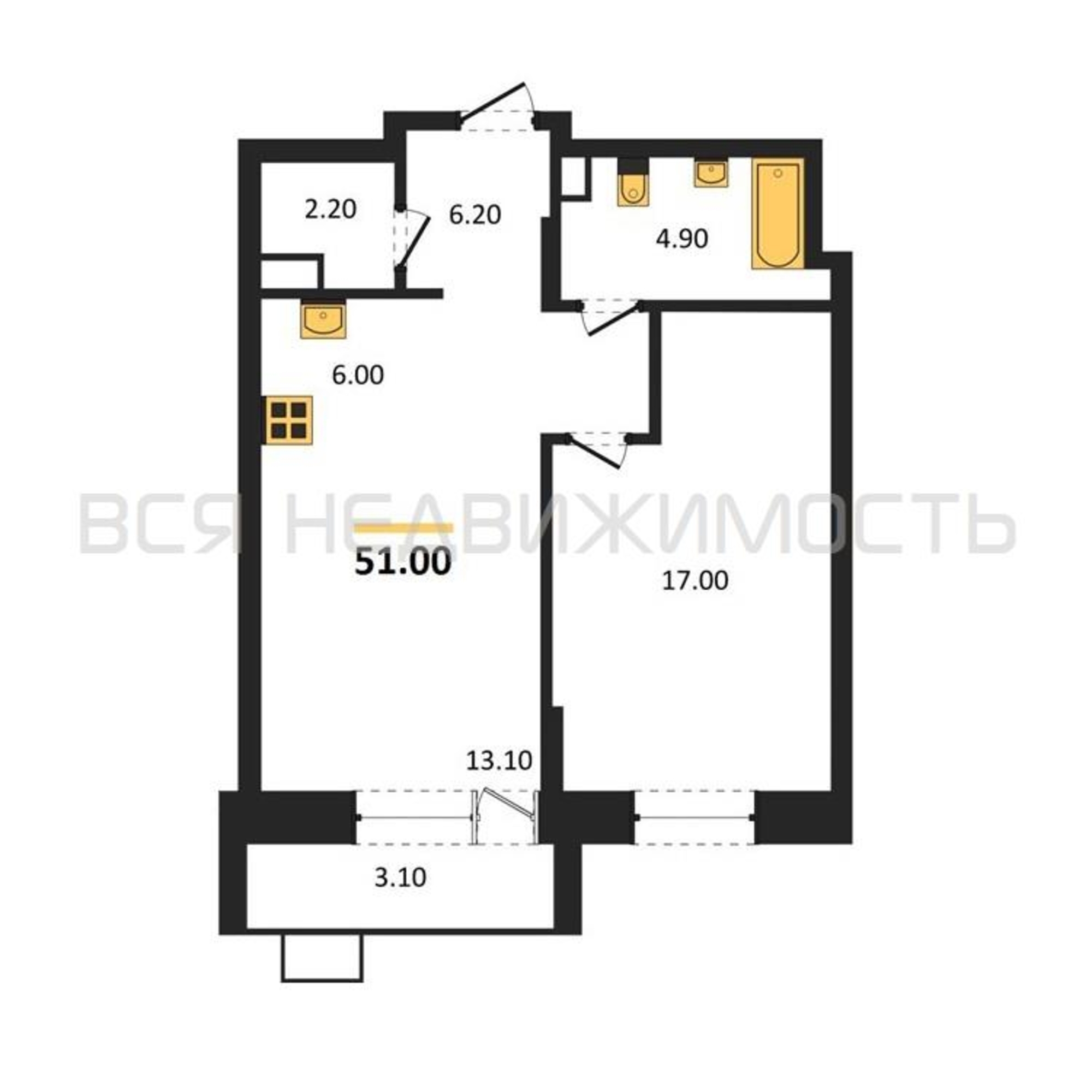 1-комнатная квартира, 51.00 м² 2/9 этаж ID объекта 100137432