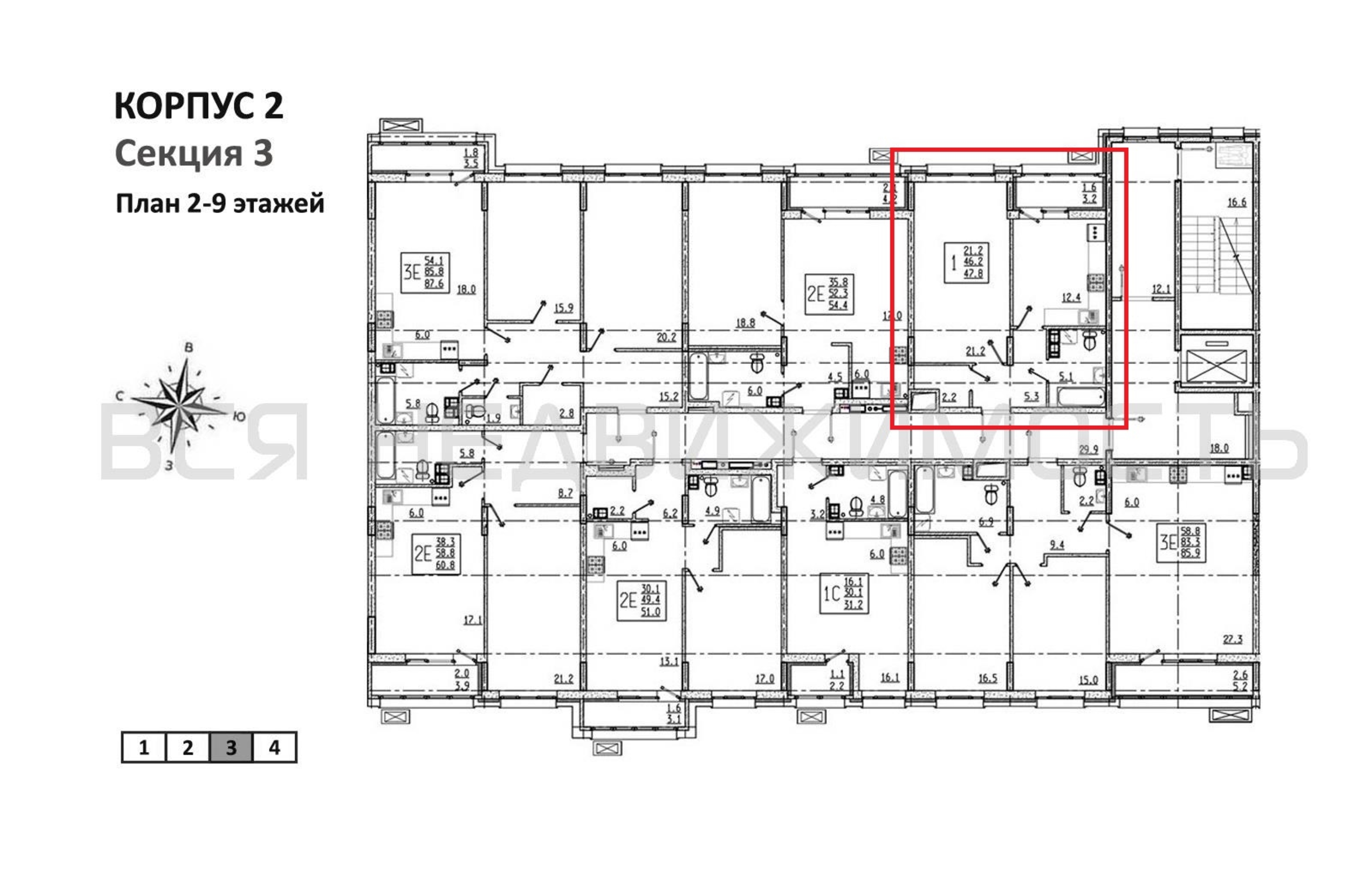 1-комнатная квартира, 47.80 м² 4/9 этаж ID объекта 100137450