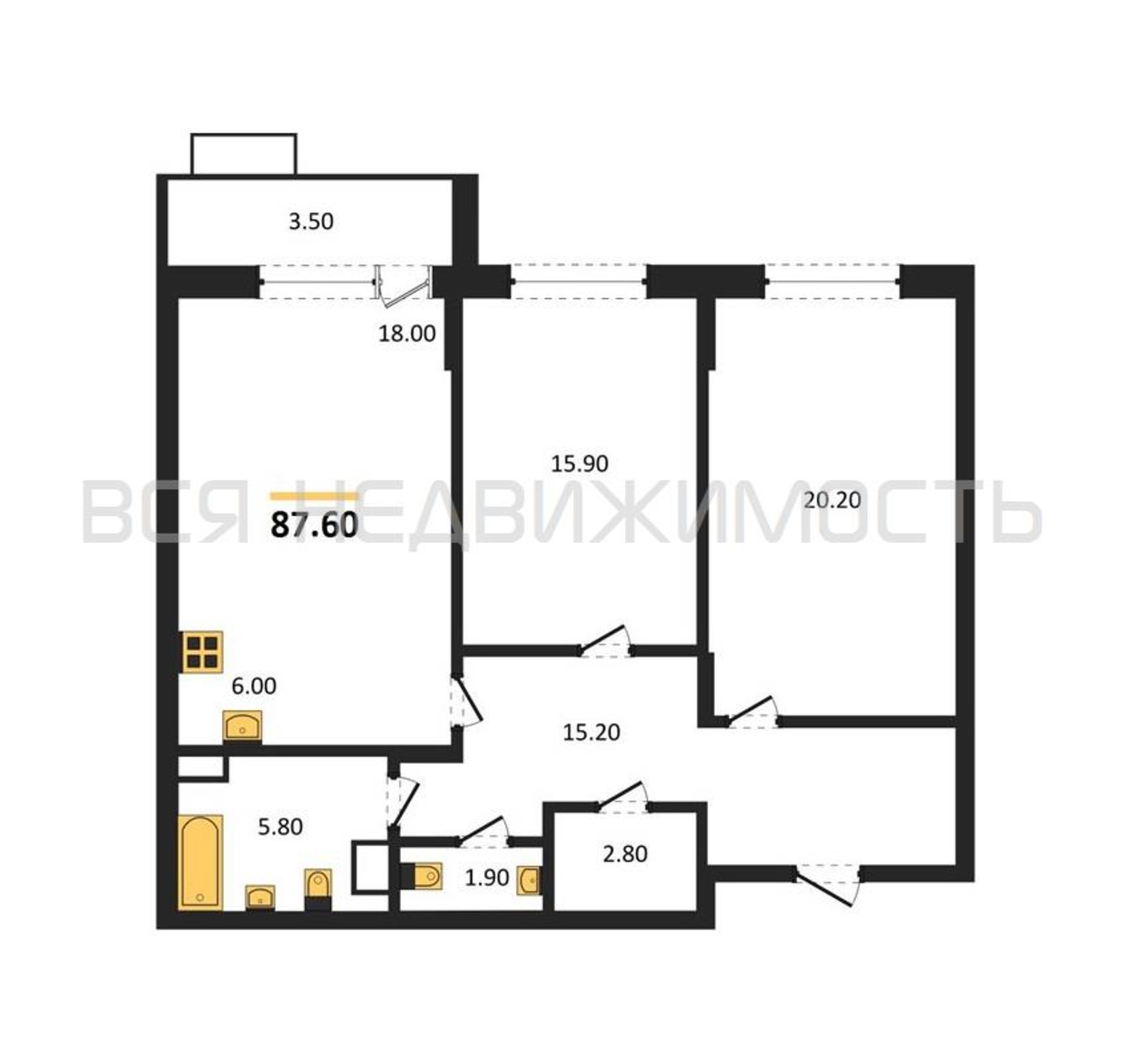 2-комнатная квартира, 87.60 м² 8/9 этаж ID объекта 100137476