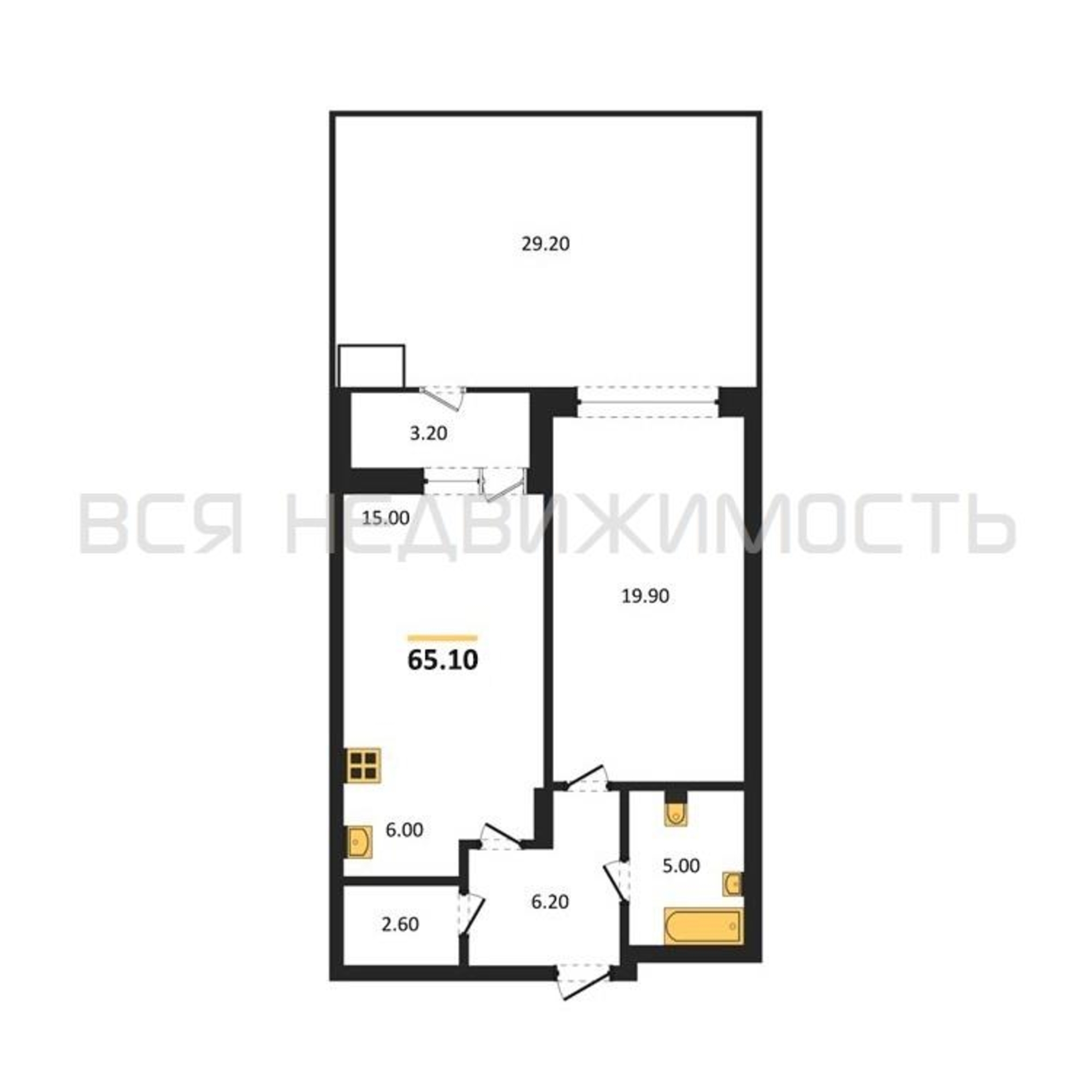 1-комнатная квартира, 65.10 м² 1/9 этаж ID объекта 100137486