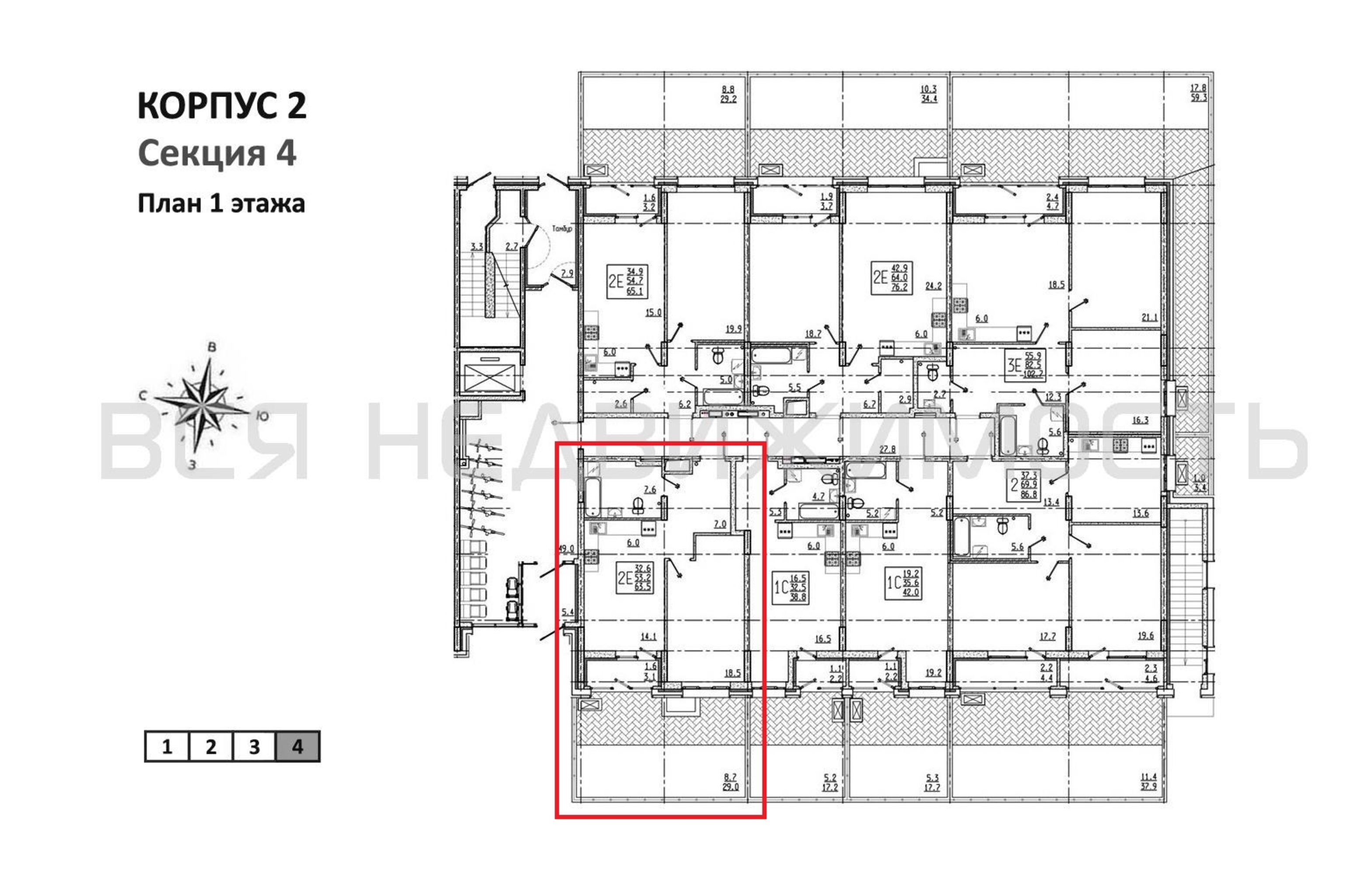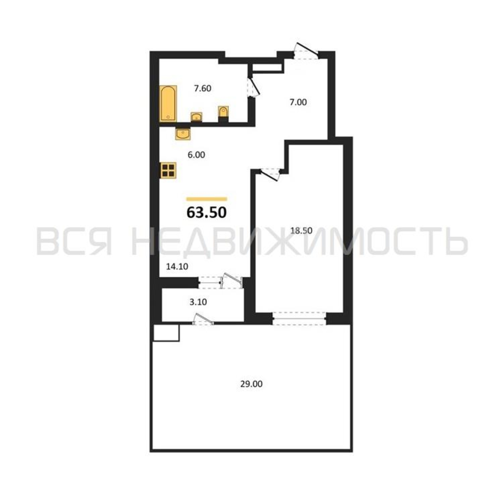 1-комнатная квартира, 63.50 м² 1/9 этаж ID объекта 100137492