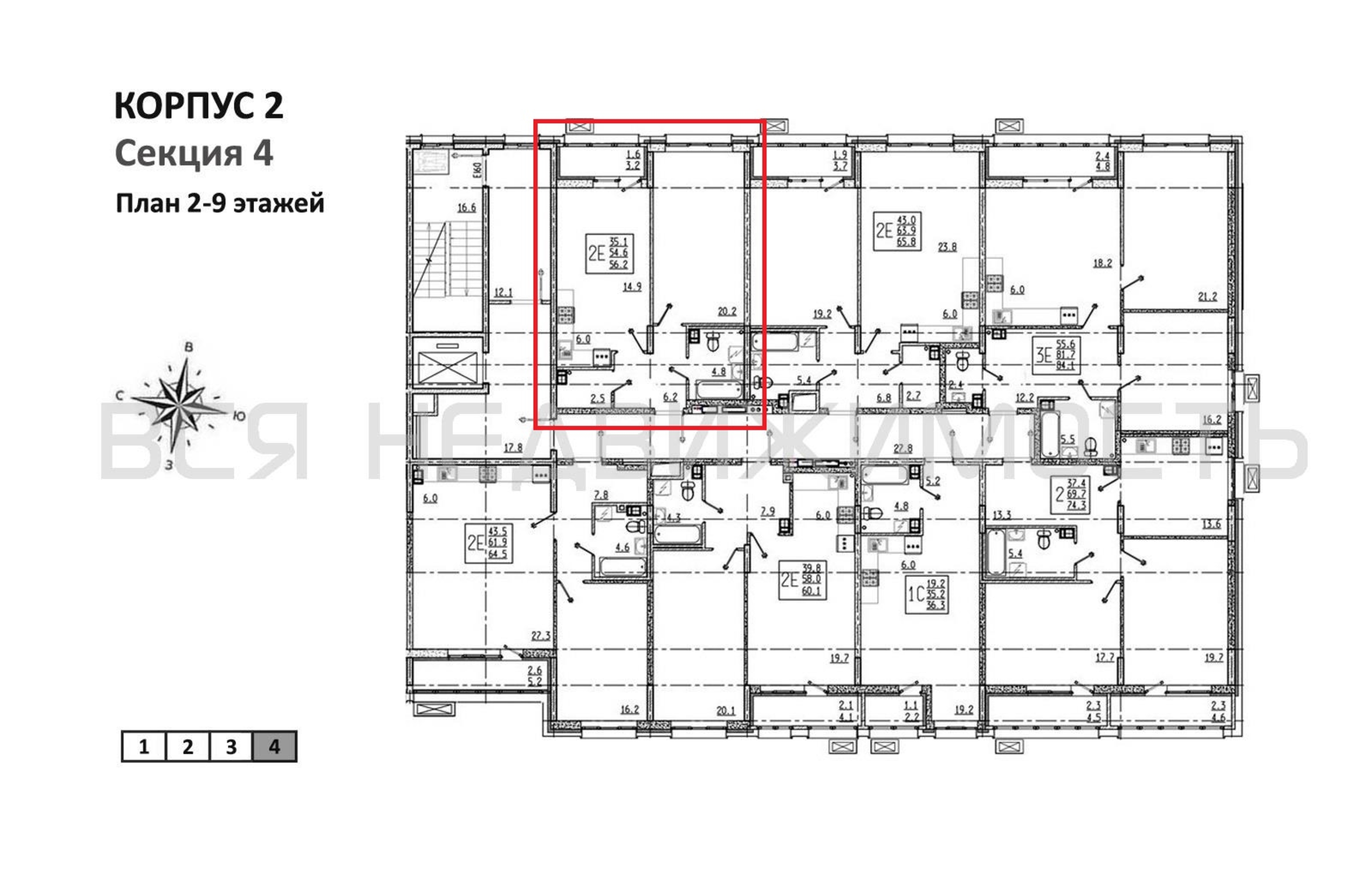 1-комнатная квартира, 56.20 м² 7/9 этаж ID объекта 100137528