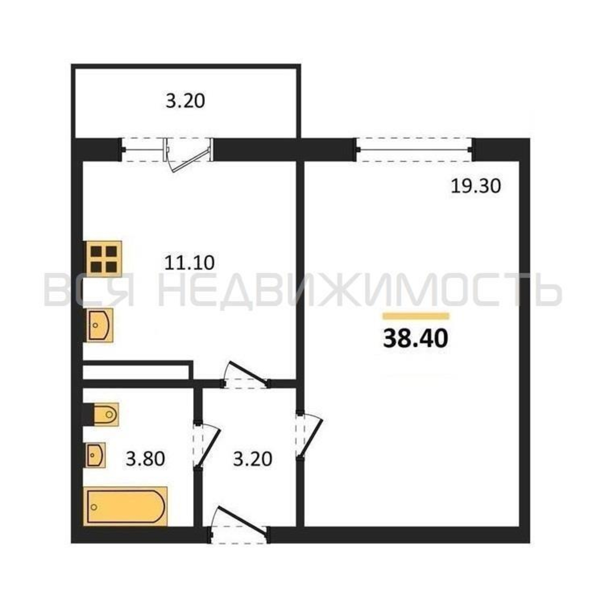 Строительная площадь38.40 м²