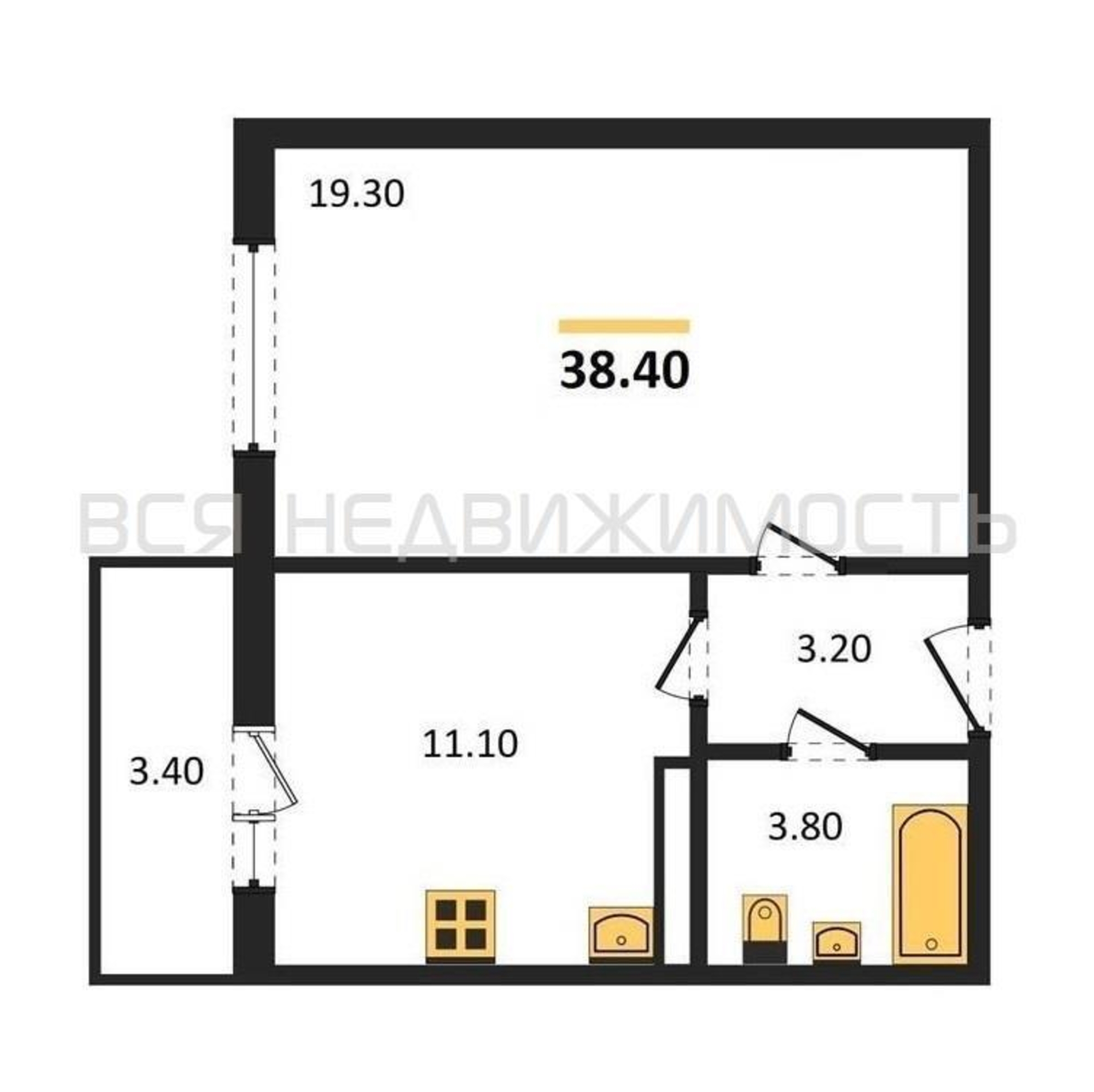 1-комнатная квартира, 38.40 м² 1/7 этаж ID объекта 100137833