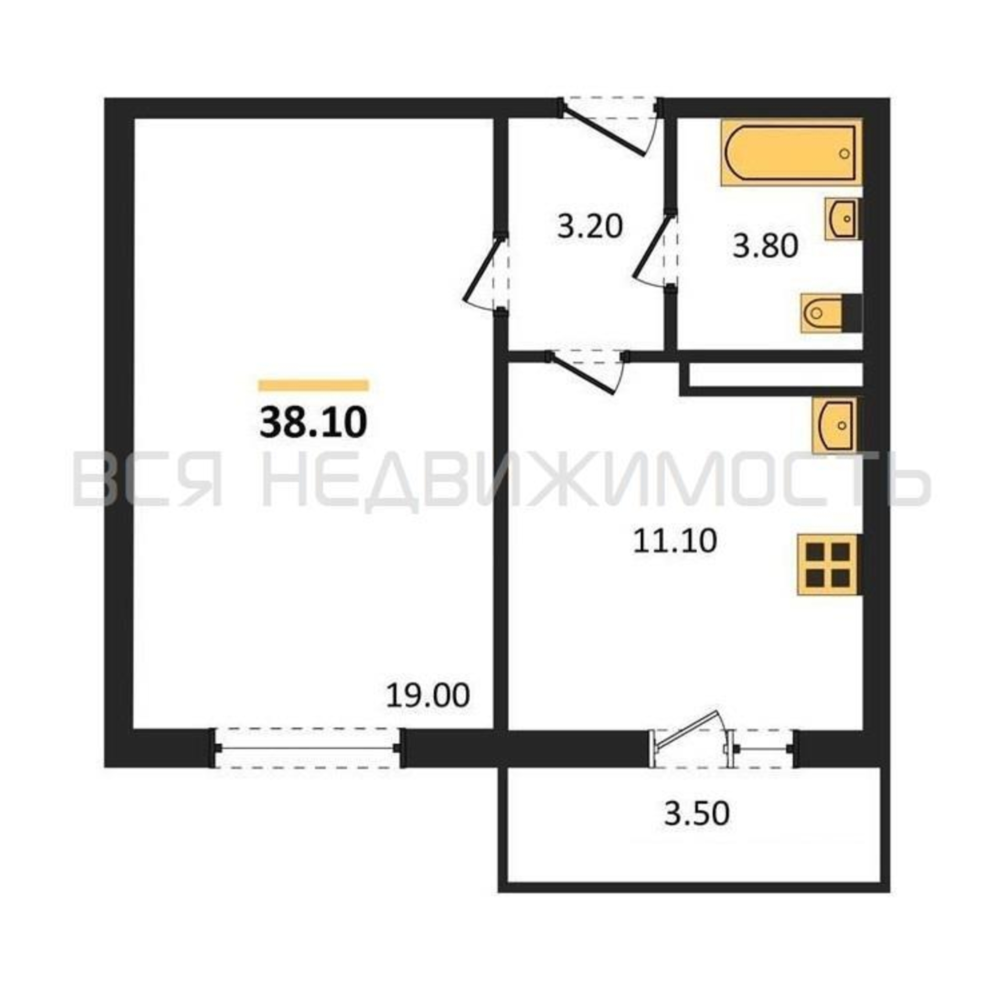 Строительная площадь38.10 м²