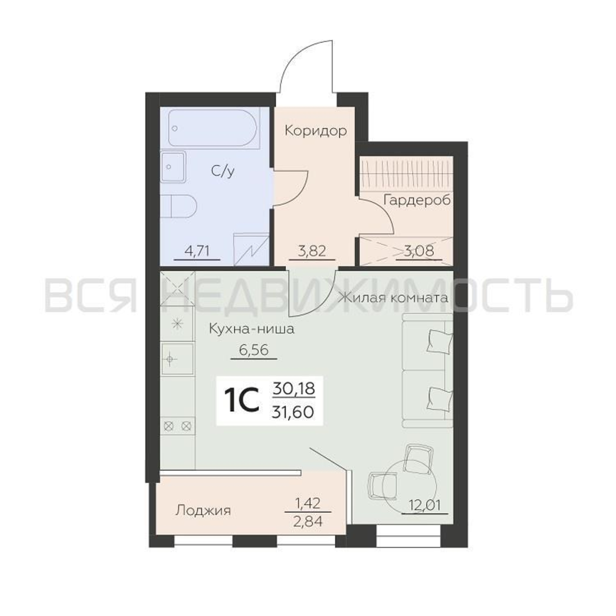 Квартиры-студии, 31.60 м² 3/16 этаж ID объекта 100137936