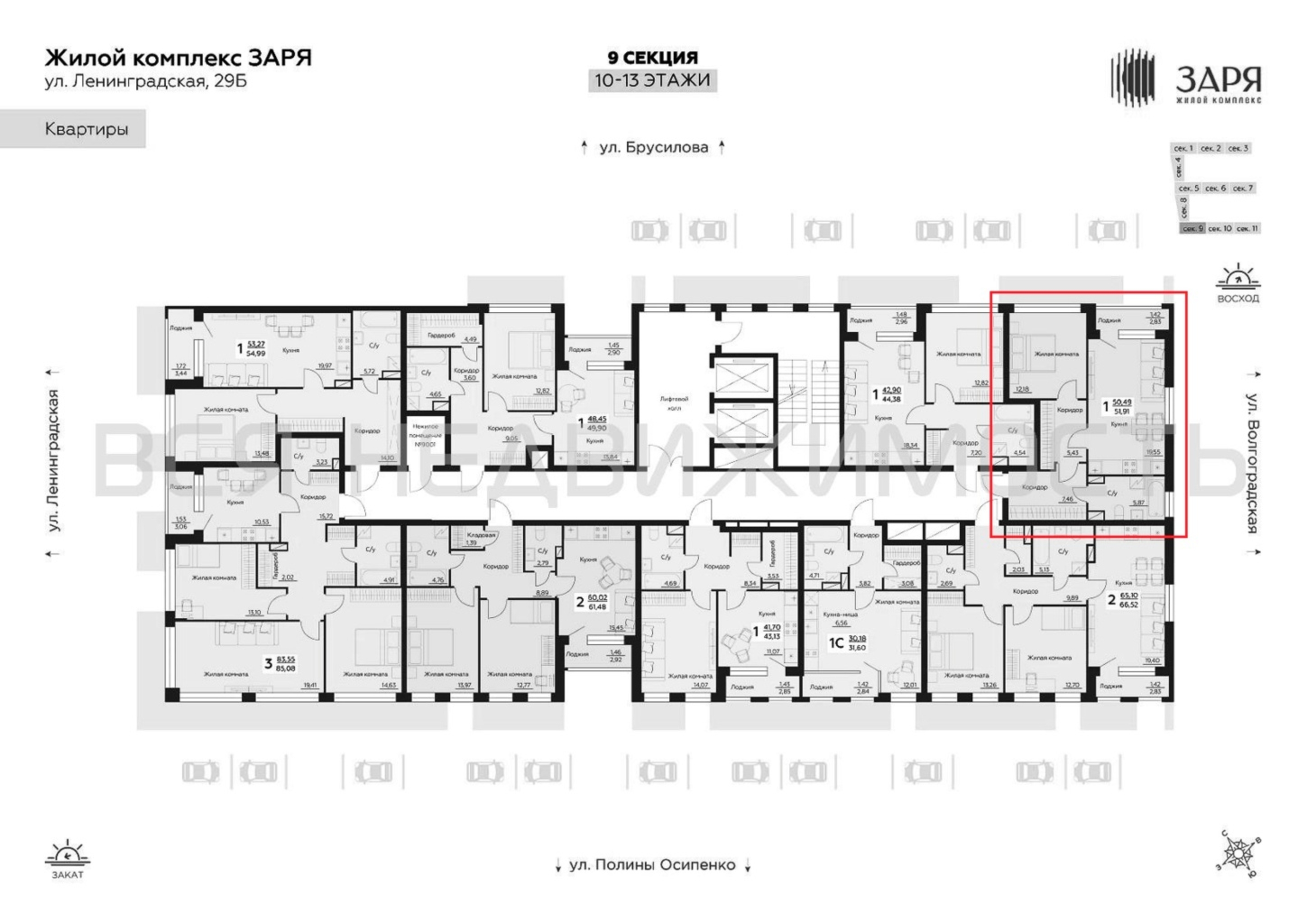 1-комнатная квартира, 51.91 м² 11/16 этаж ID объекта 100138006