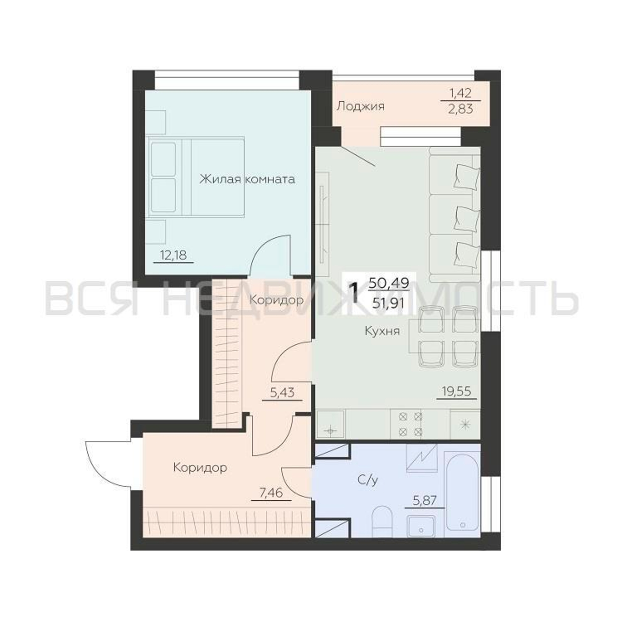 Строительная площадь51.91 м²