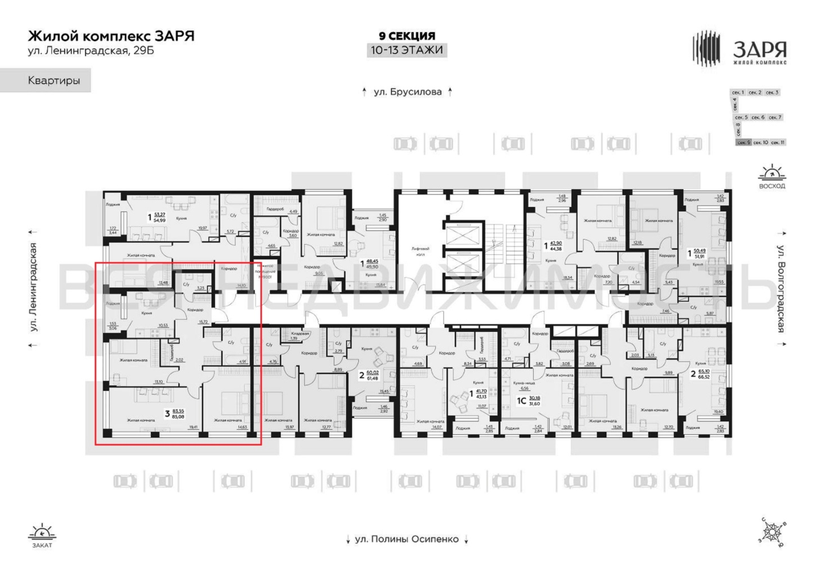 3-комнатная квартира, 85.08 м² 11/16 этаж ID объекта 100138011