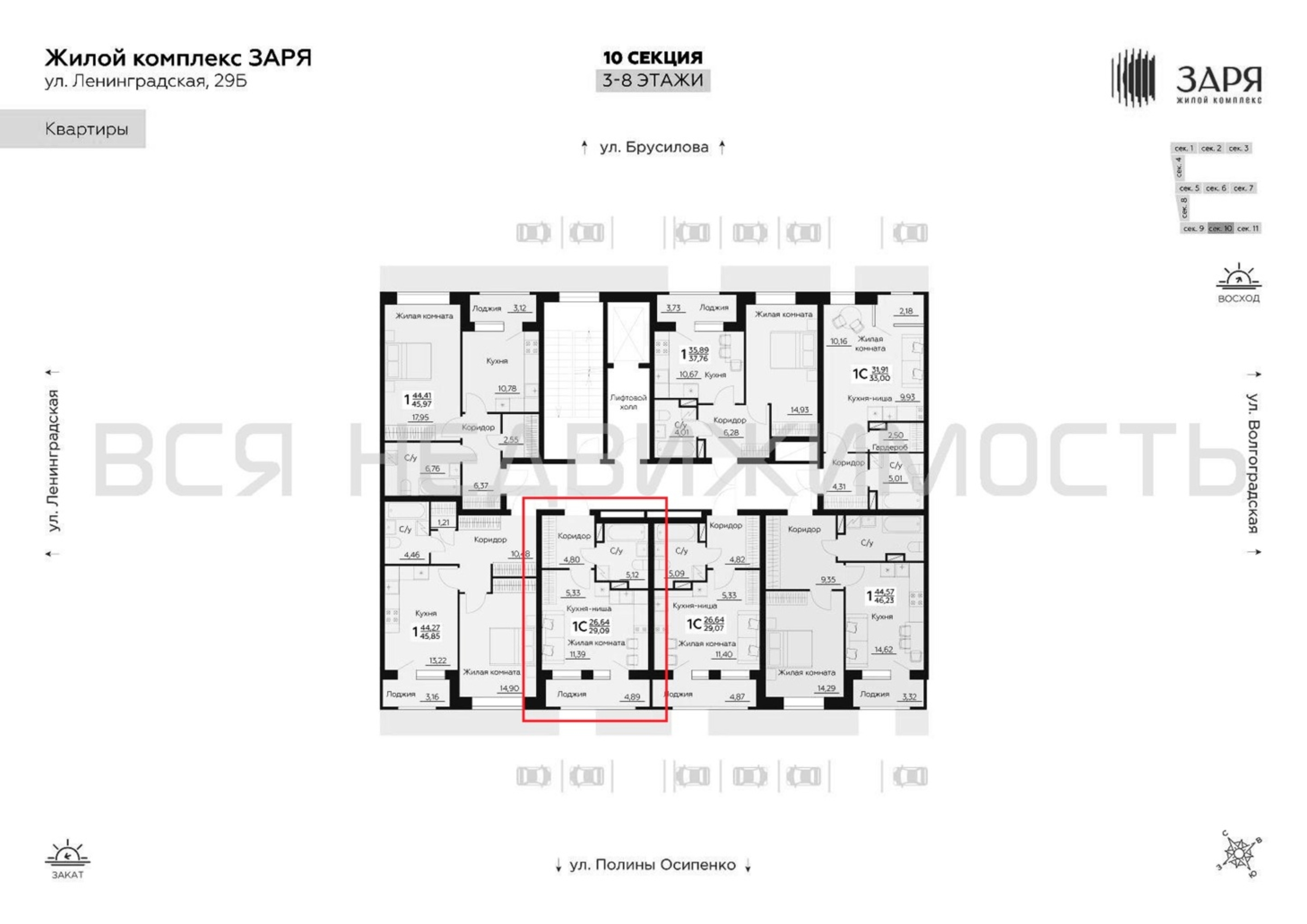Квартиры-студии, 29.09 м² 6/8 этаж ID объекта 100138085