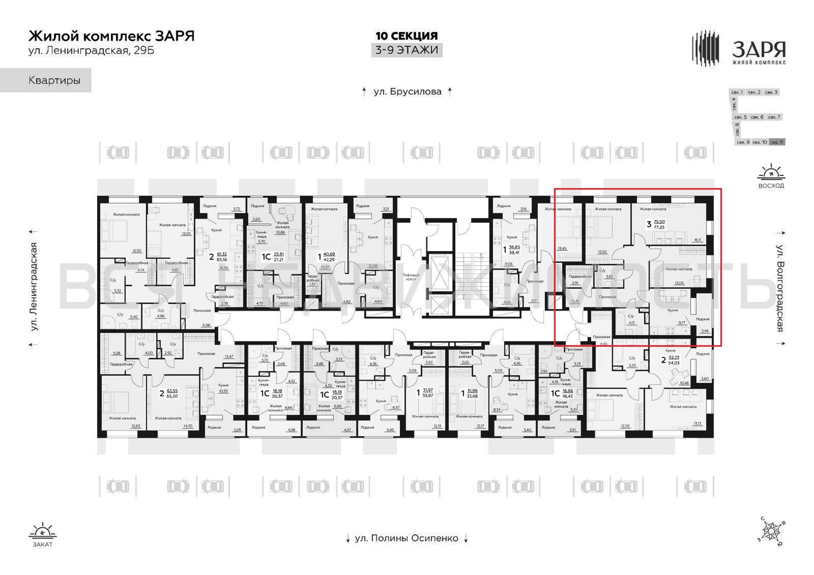 3-комнатная квартира, 77.25 м² 3/14 этаж ID объекта 100138115