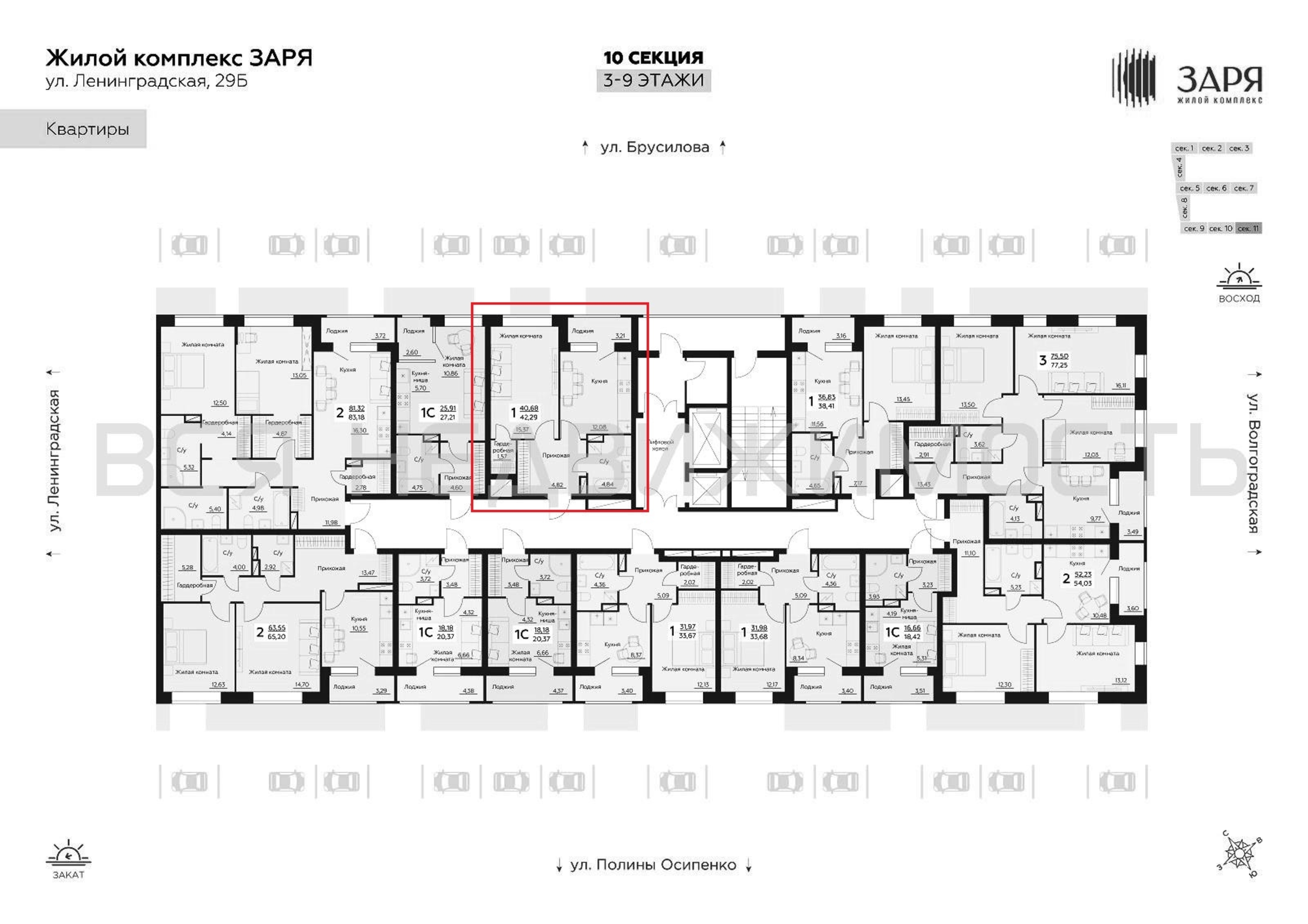 1-комнатная квартира, 42.29 м² 3/14 этаж ID объекта 100138125