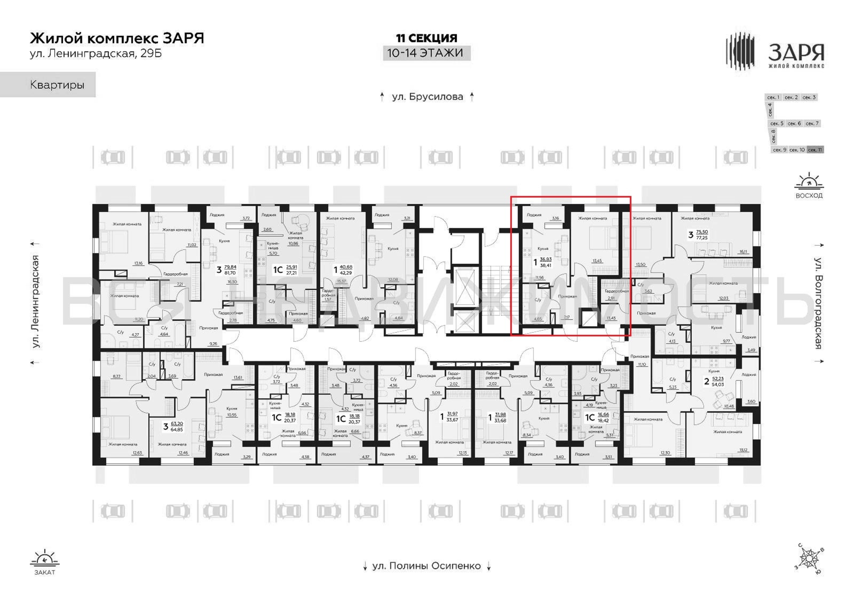 1-комнатная квартира, 38.41 м² 11/14 этаж ID объекта 100138210