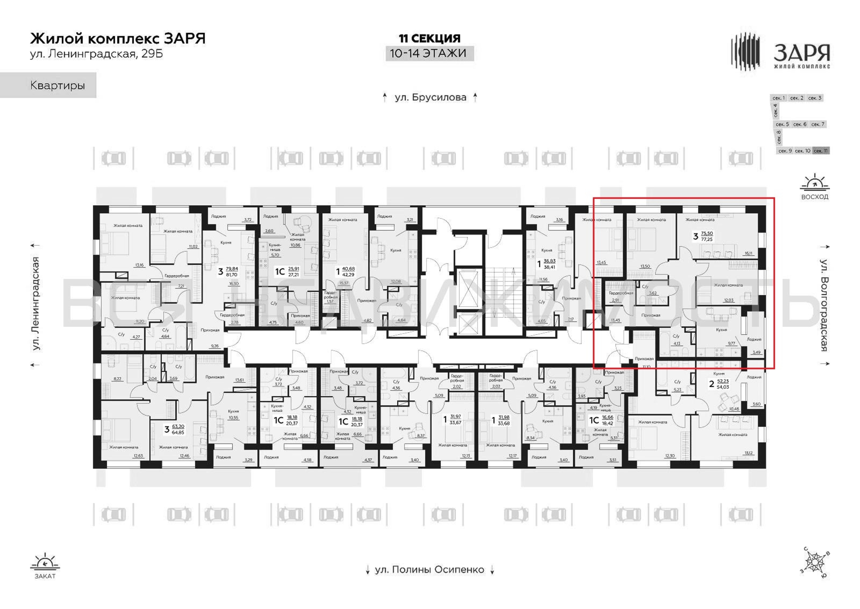 3-комнатная квартира, 77.25 м² 11/14 этаж ID объекта 100138211