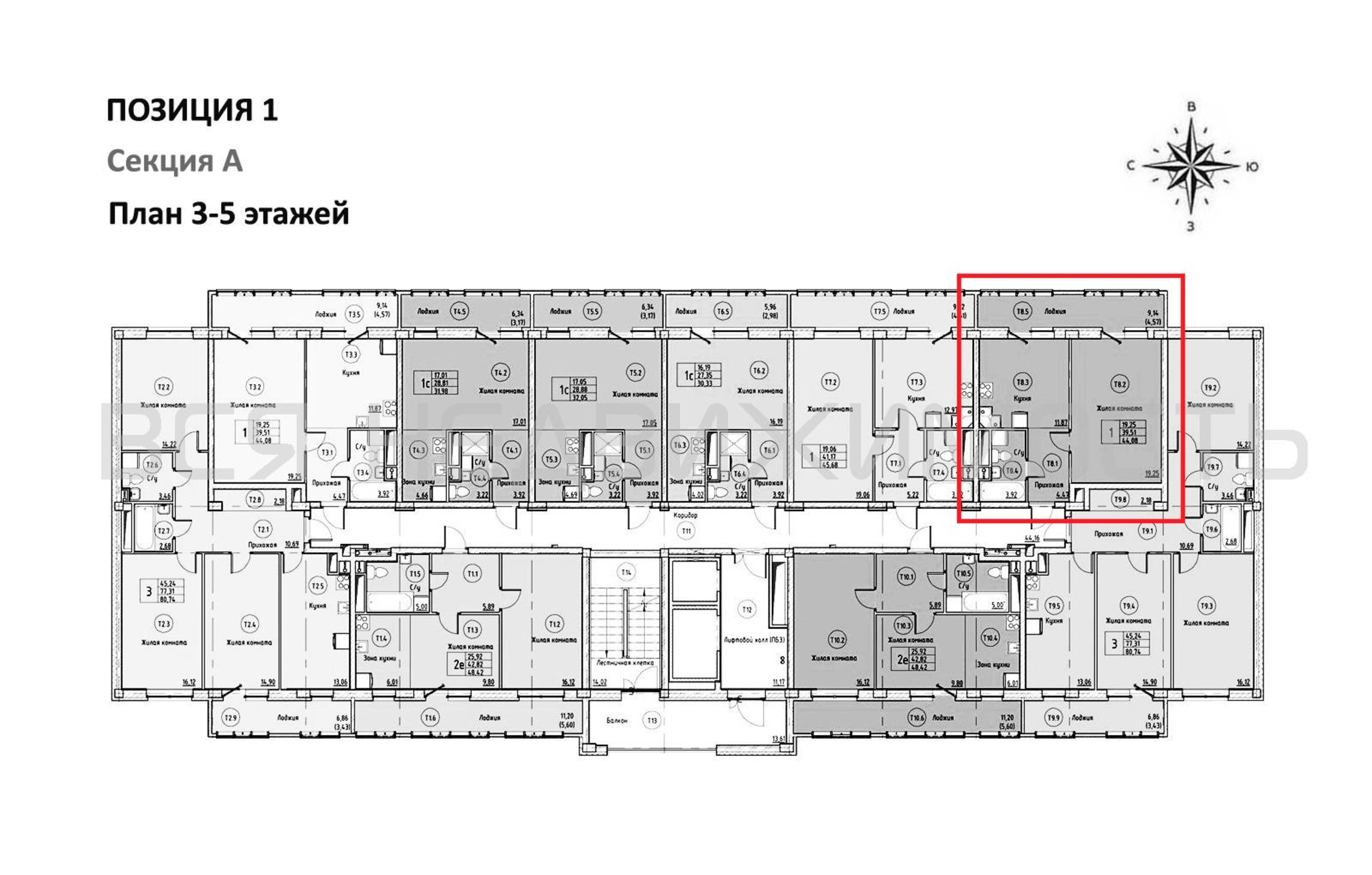 1-комнатная квартира, 44.08 м² 4/16 этаж ID объекта 100138586