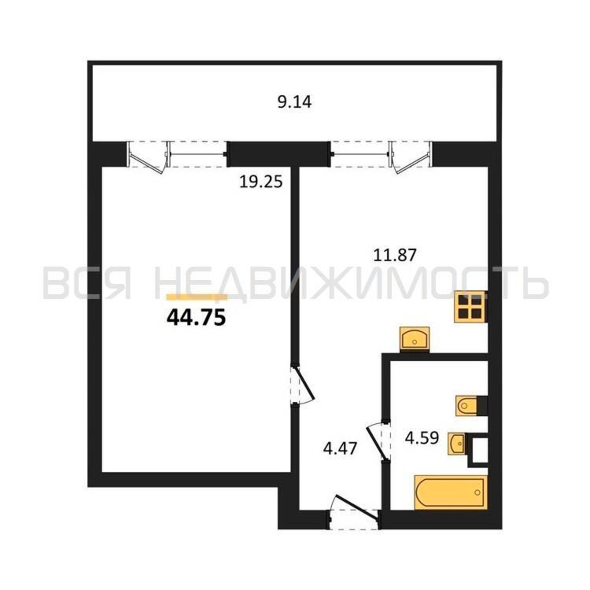 1-комнатная квартира, 44.75 м² 2/16 этаж ID объекта 100138597