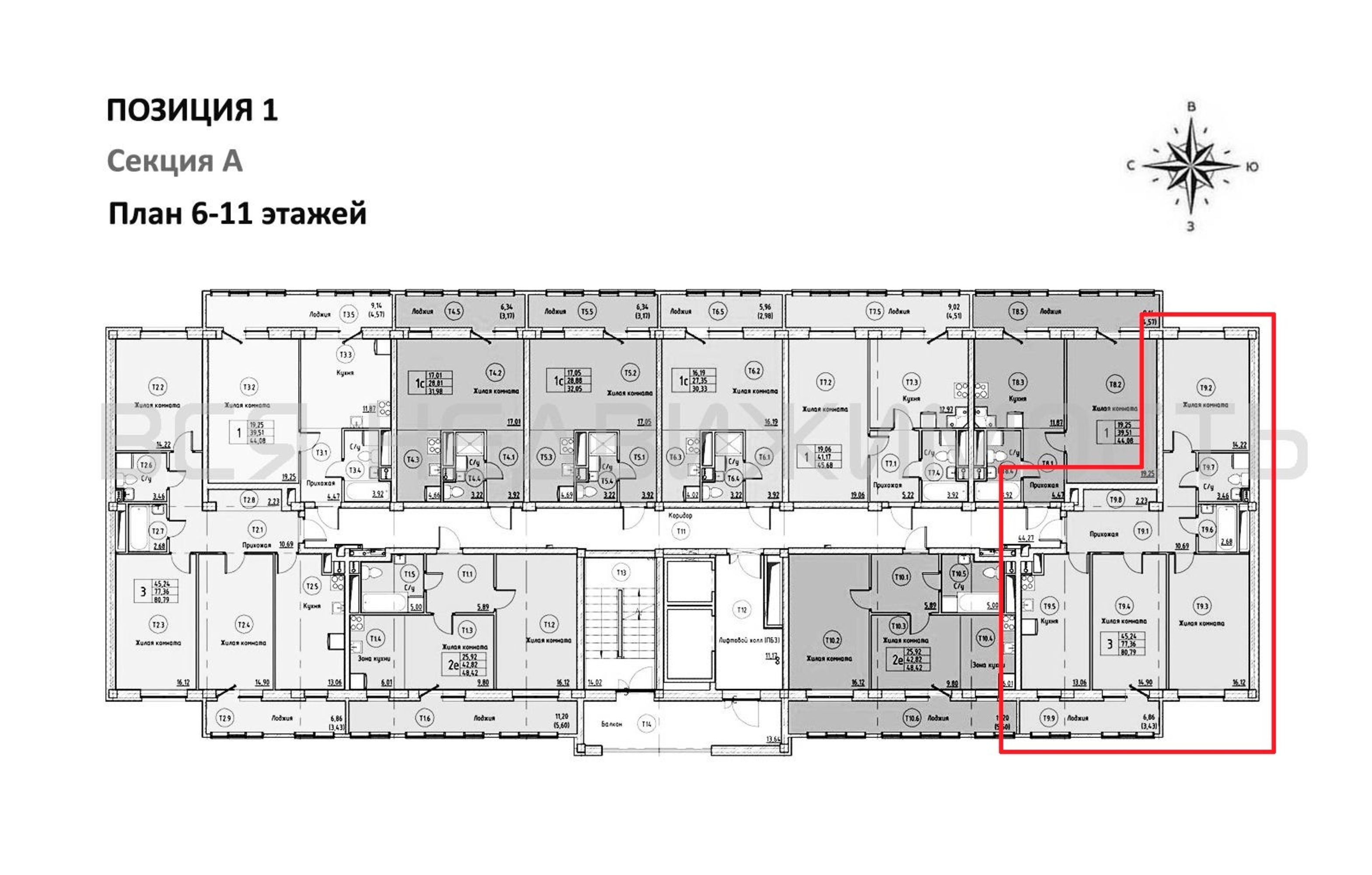 3-комнатная квартира, 80.79 м² 8/16 этаж ID объекта 100138641